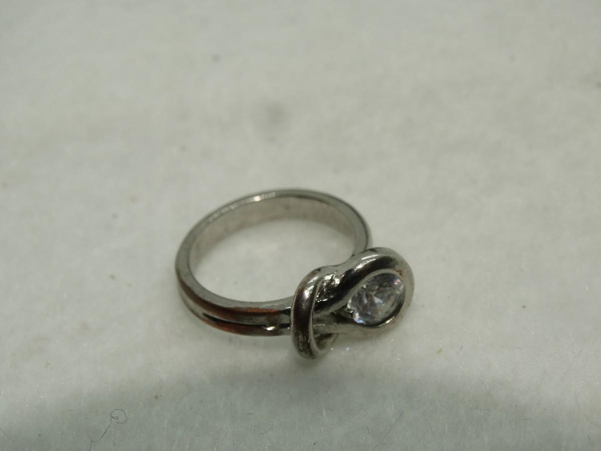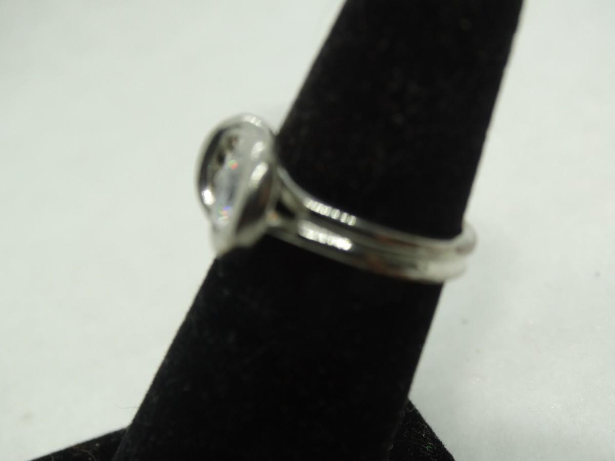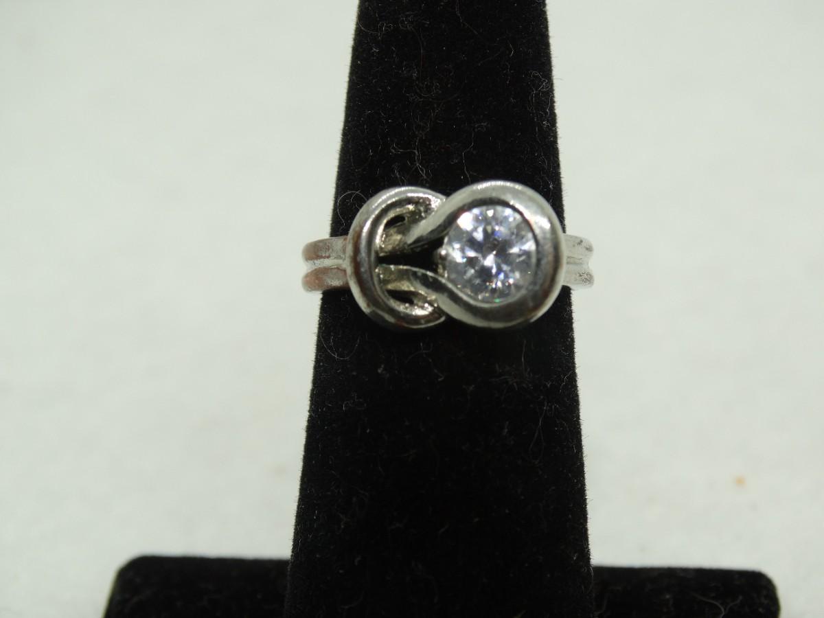 Silver Tone Swirl CZ Center Stone Ring