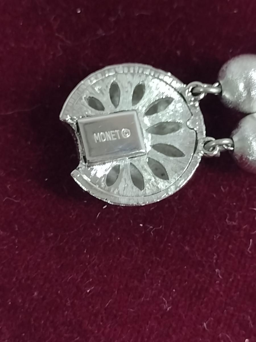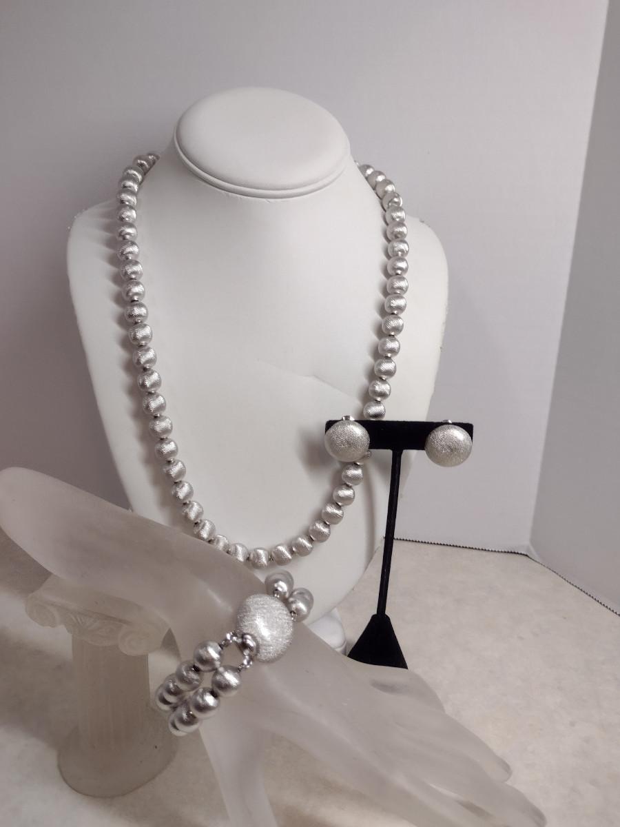 Monet Silver Tone Textured Finish Necklace, Bracelet, and Earring Set (#31). Earrings are clip-on.
