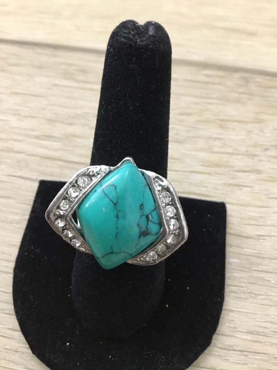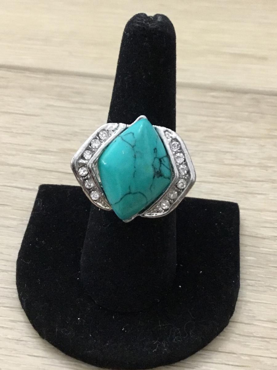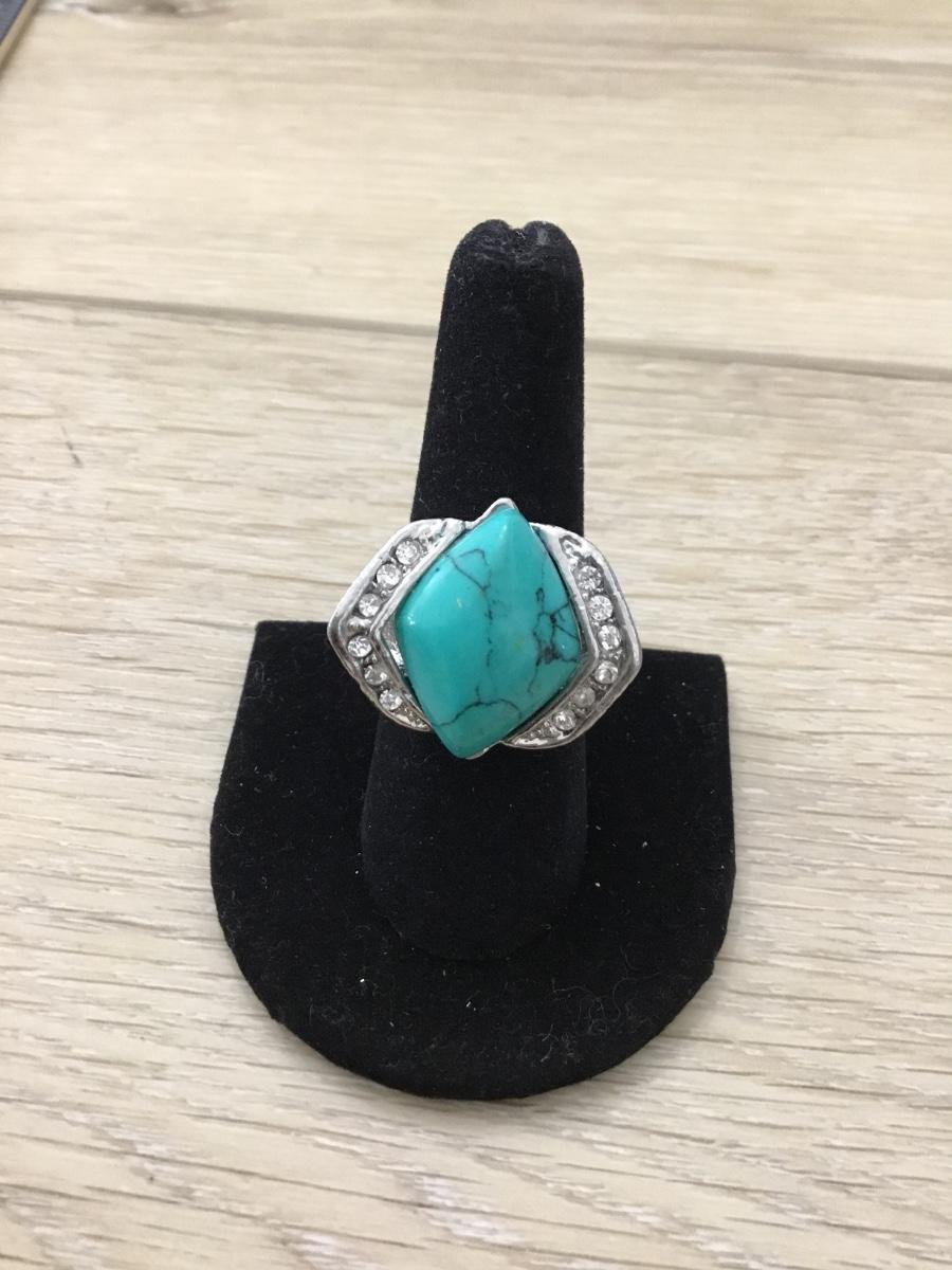 Silver tone turquoise tone fashion ring