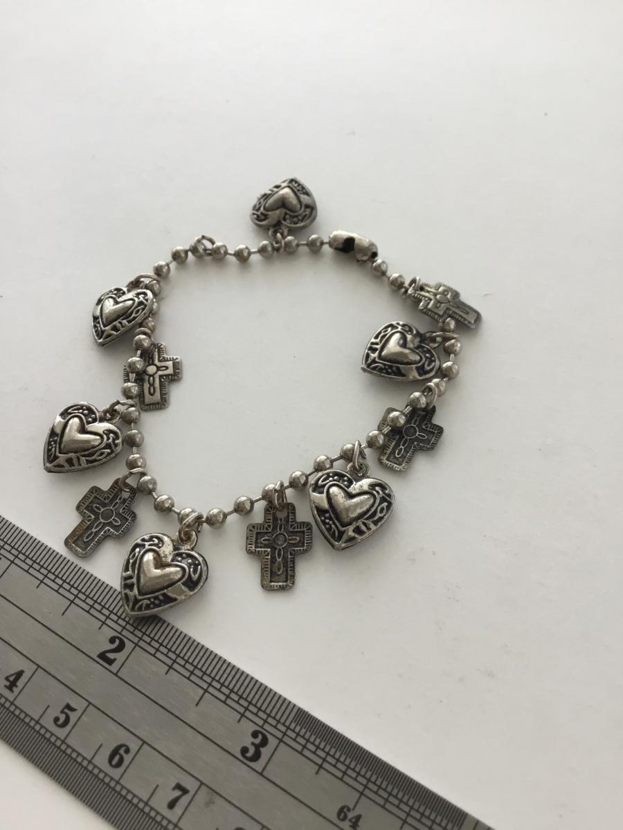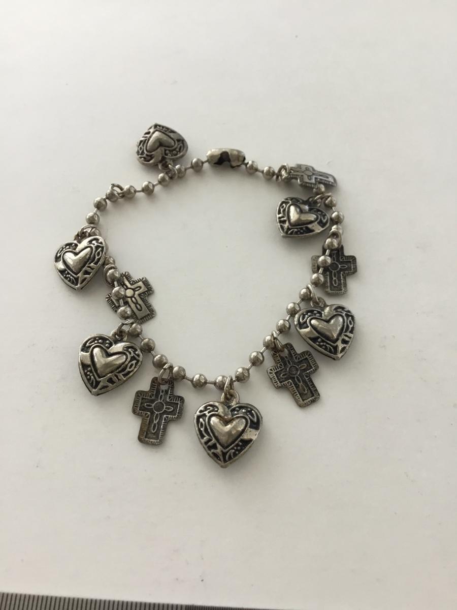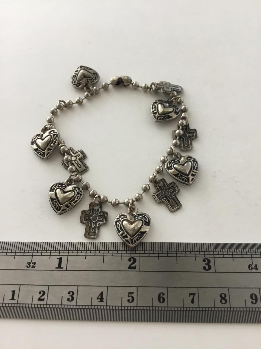 Silver tone unmarked fashion charm bracelet