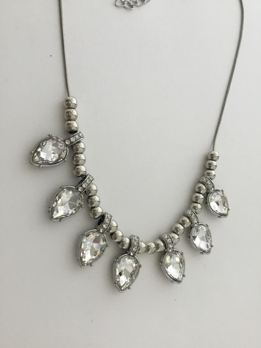 Silver tone unmarked faux gemstone fashion necklace