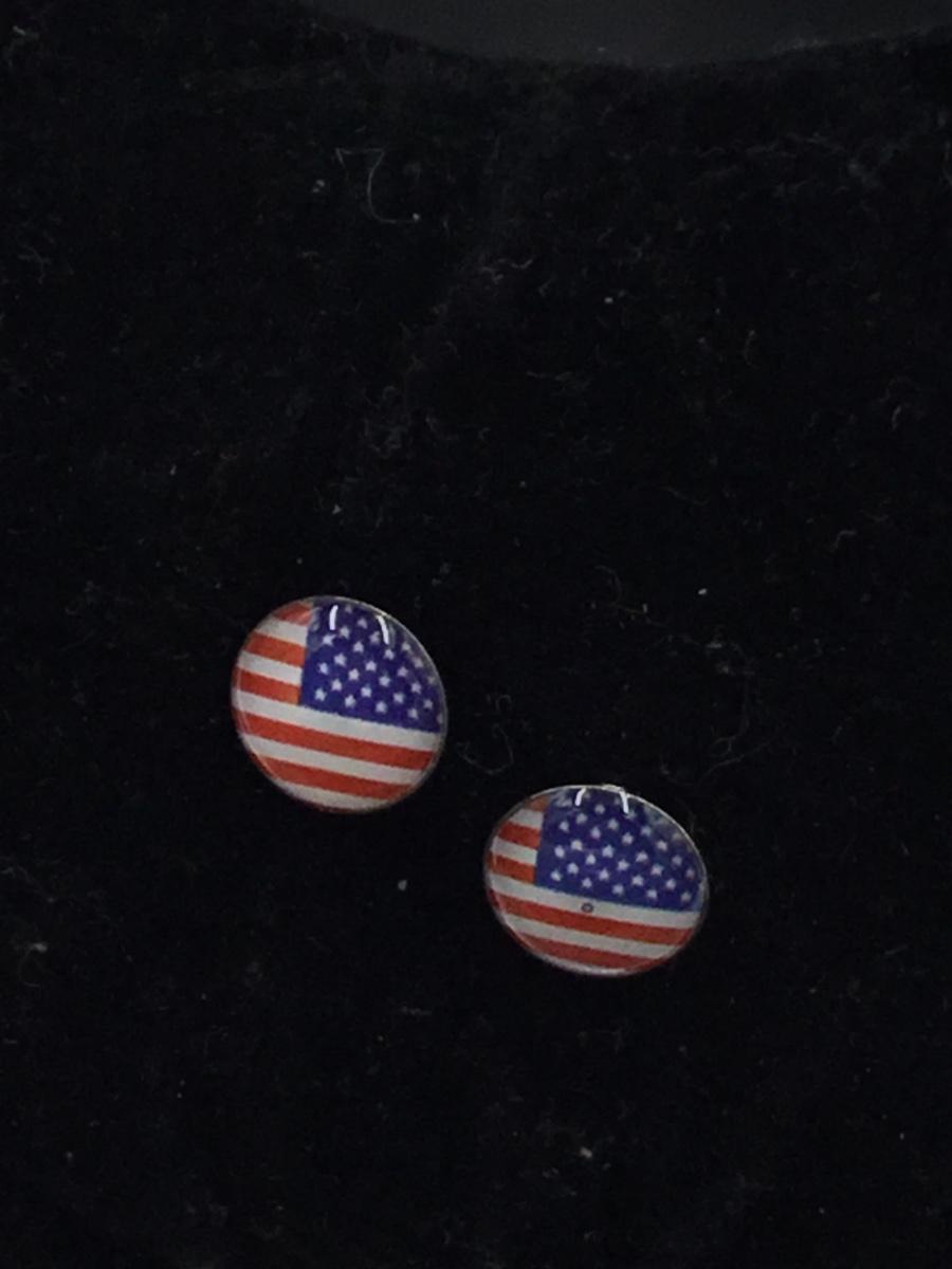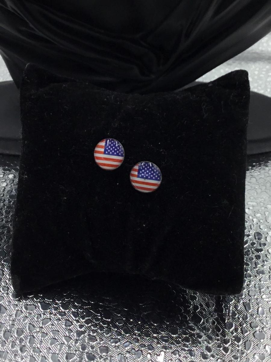 Silver tone USA earrings stud