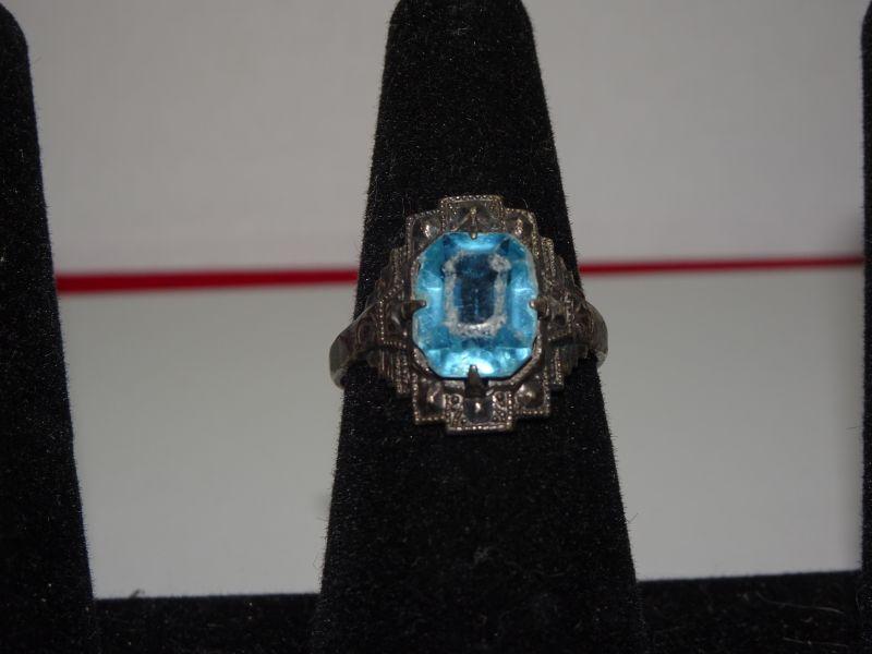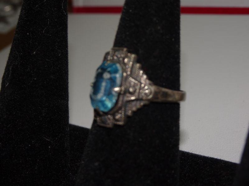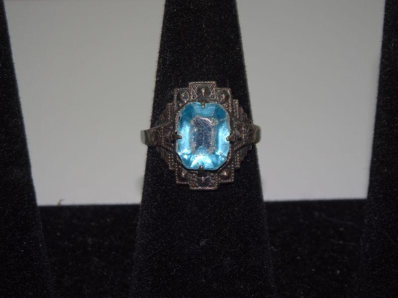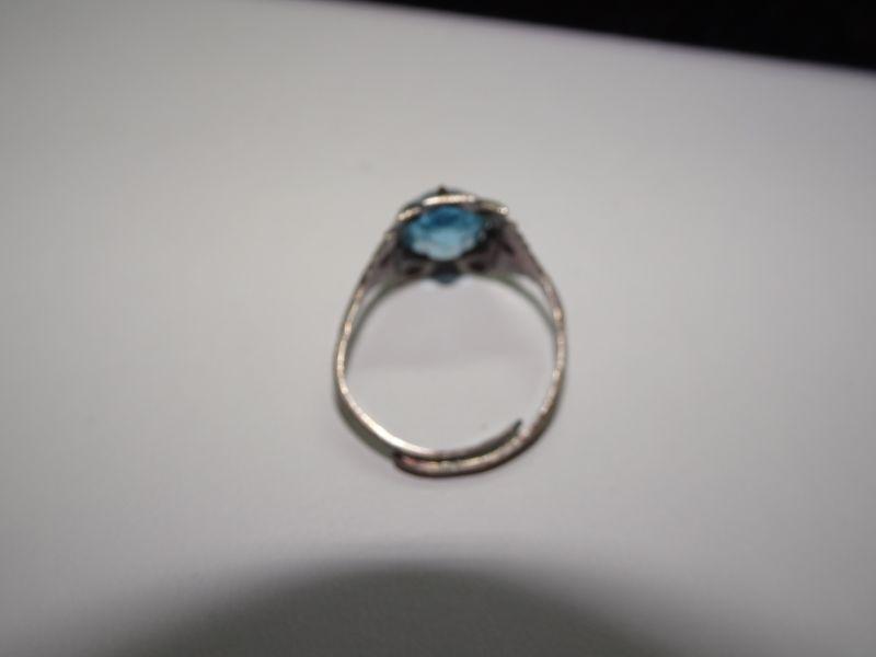 Silver tone Victorian Style simulated Blue Topaz adjustable Ring