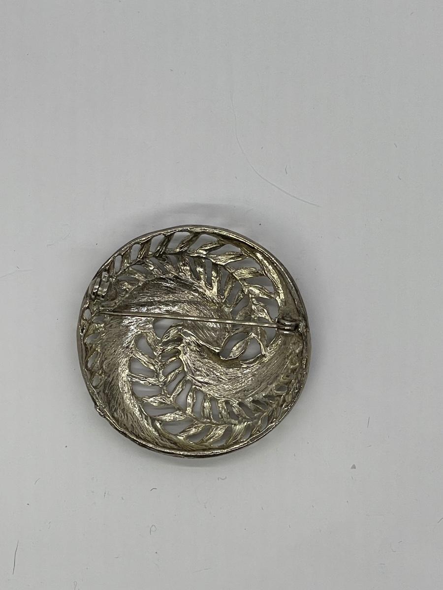 Silver Tone Vine Swirl Medallion Pin Brooch
