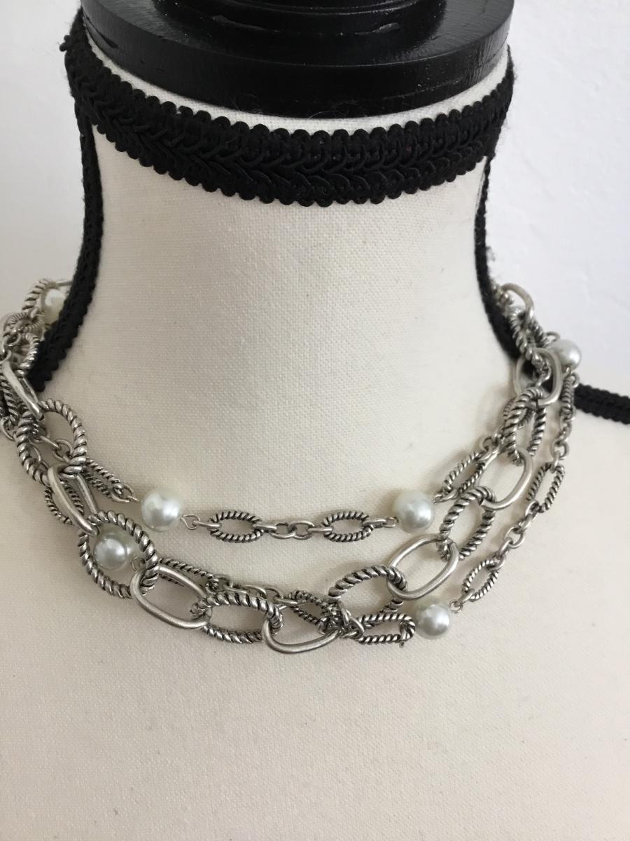 Silver tone vintage 3 layer necklace