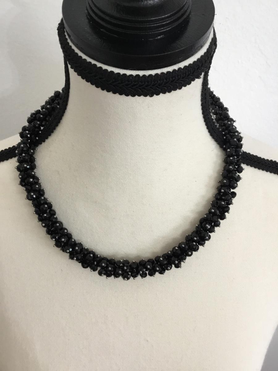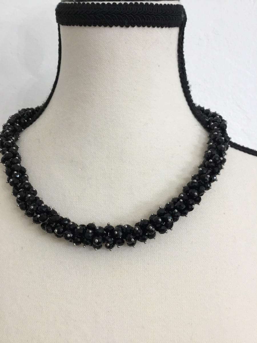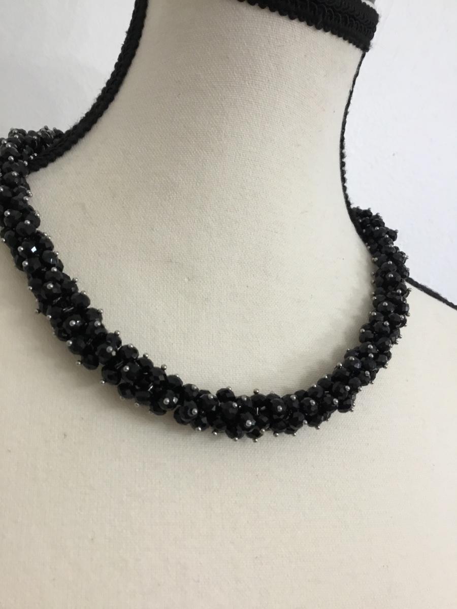 Silver tone vintage black beaded collar necklace