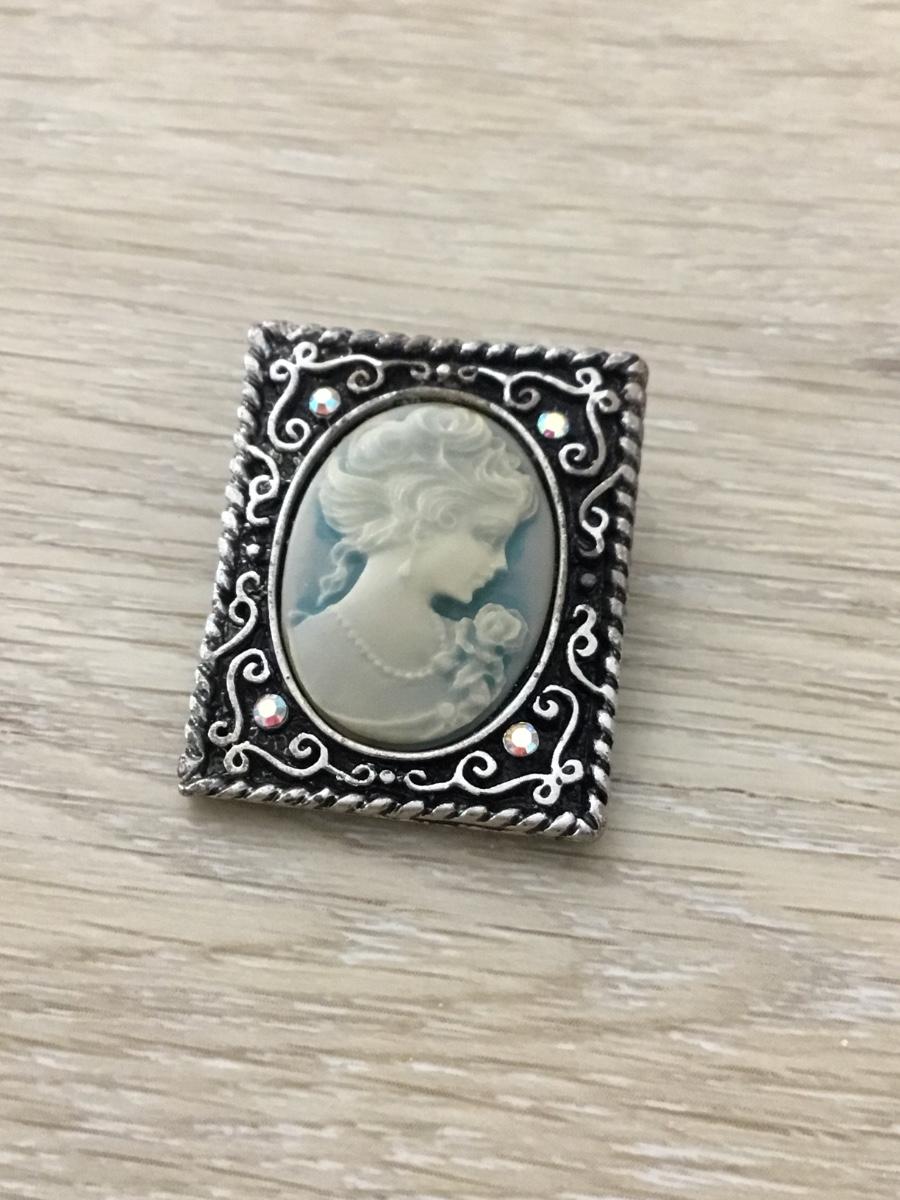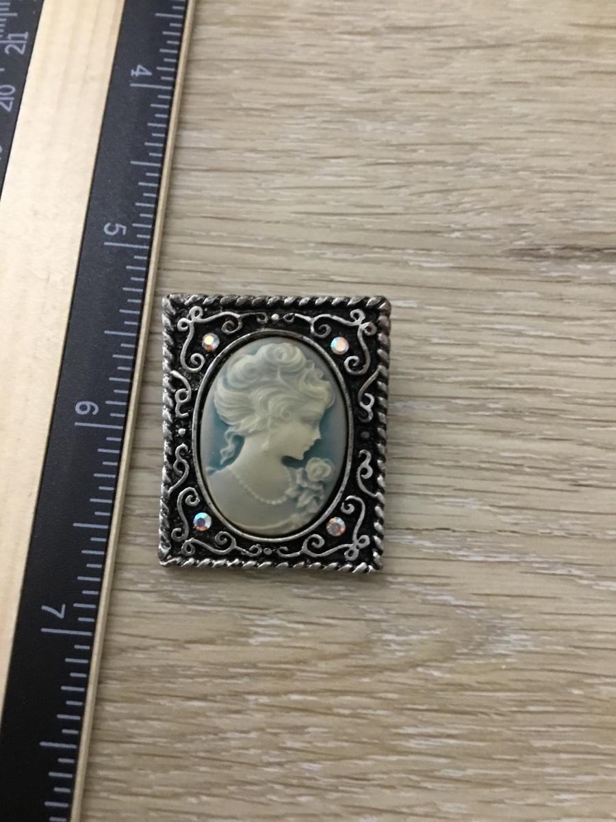 Silver tone vintage cameo lady pin