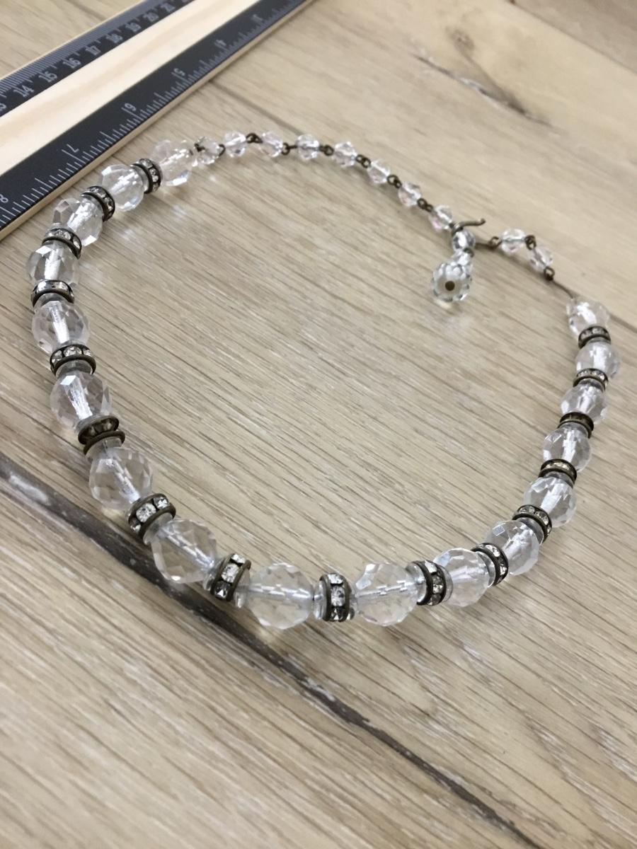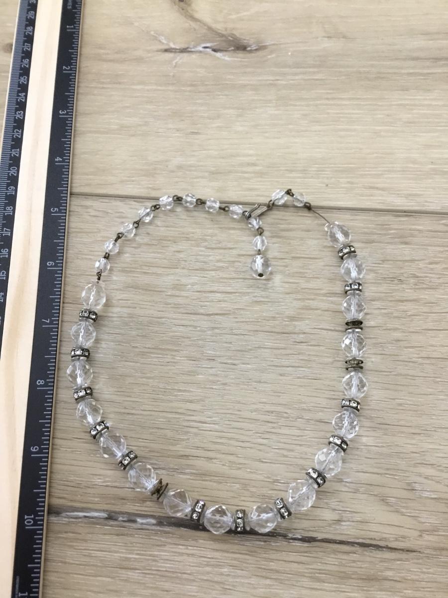Silver tone vintage clear beaded necklace