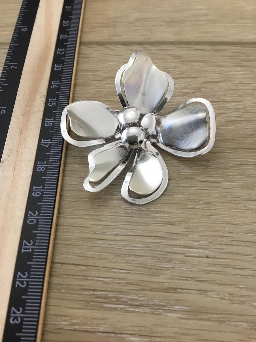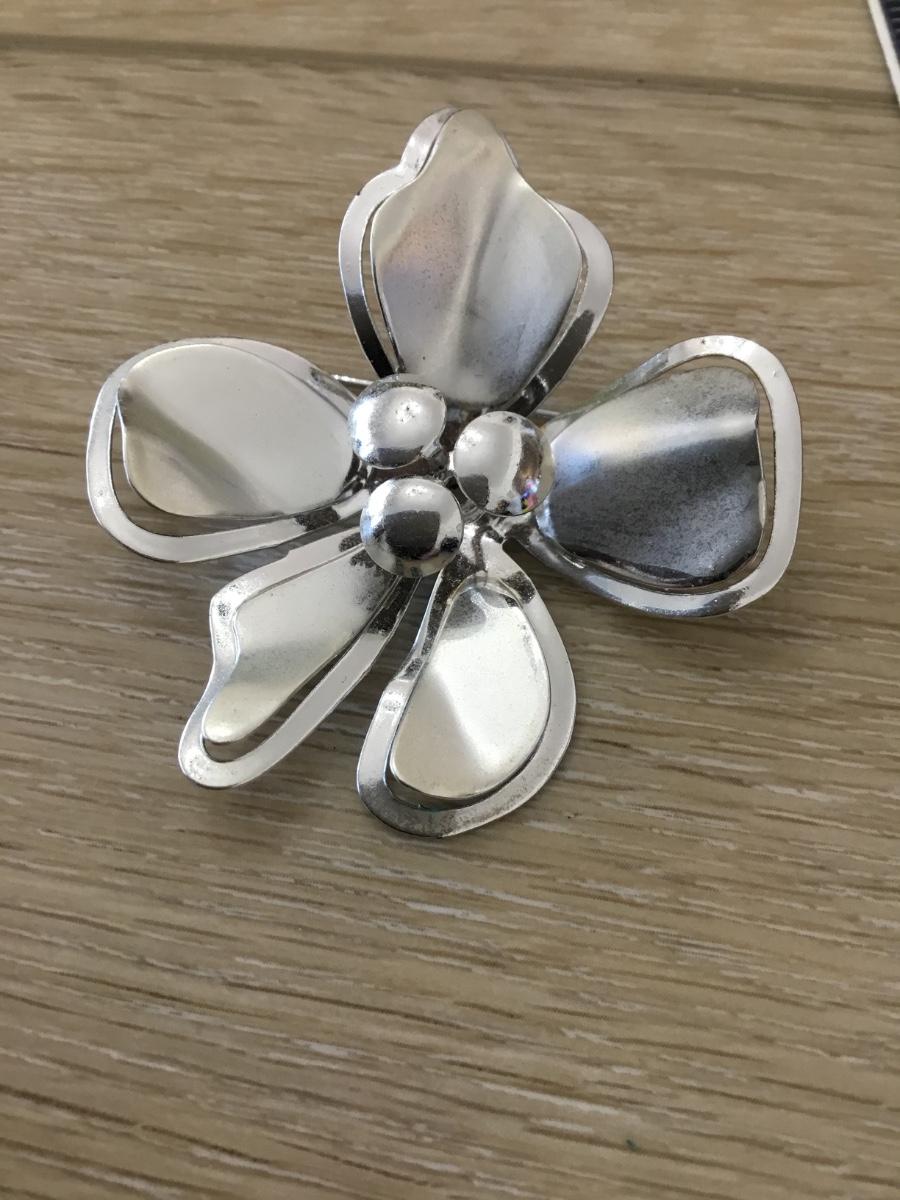 Silver tone vintage flower brooch