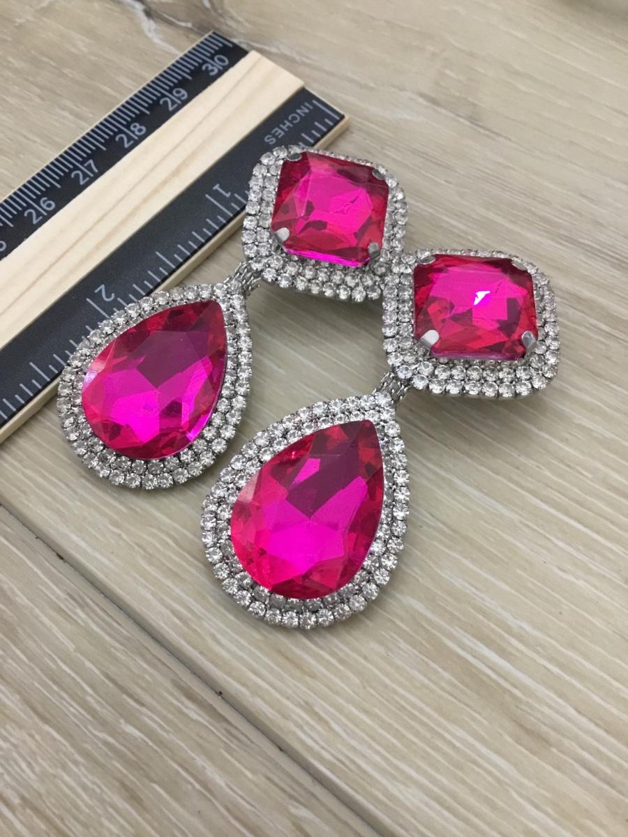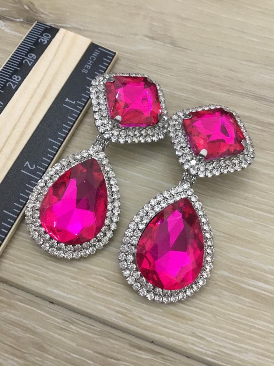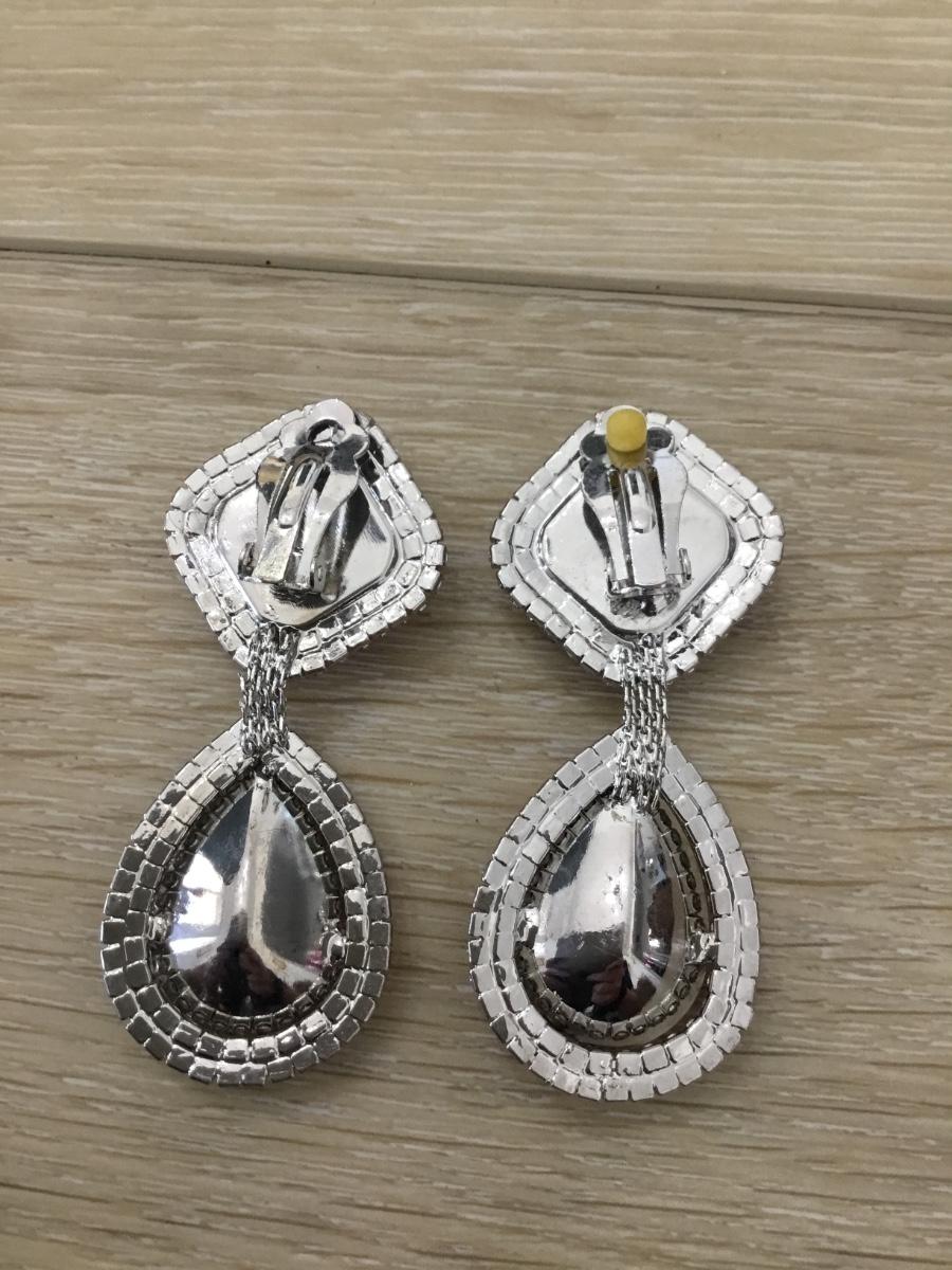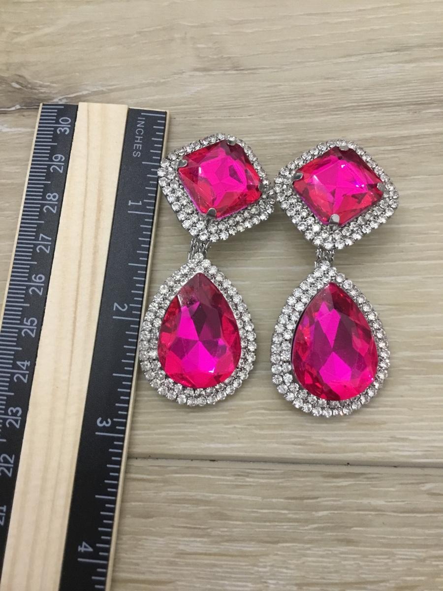 Silver tone vintage pink gem like rhinestone fashion clip on earrings