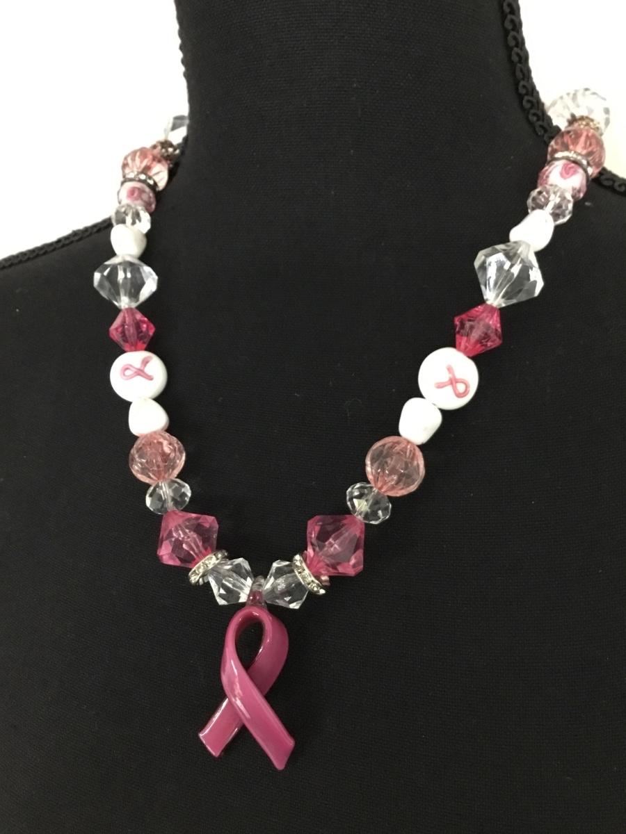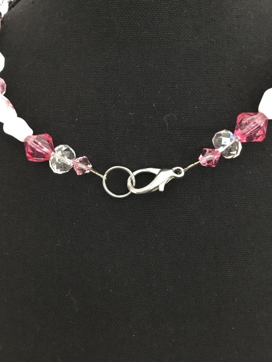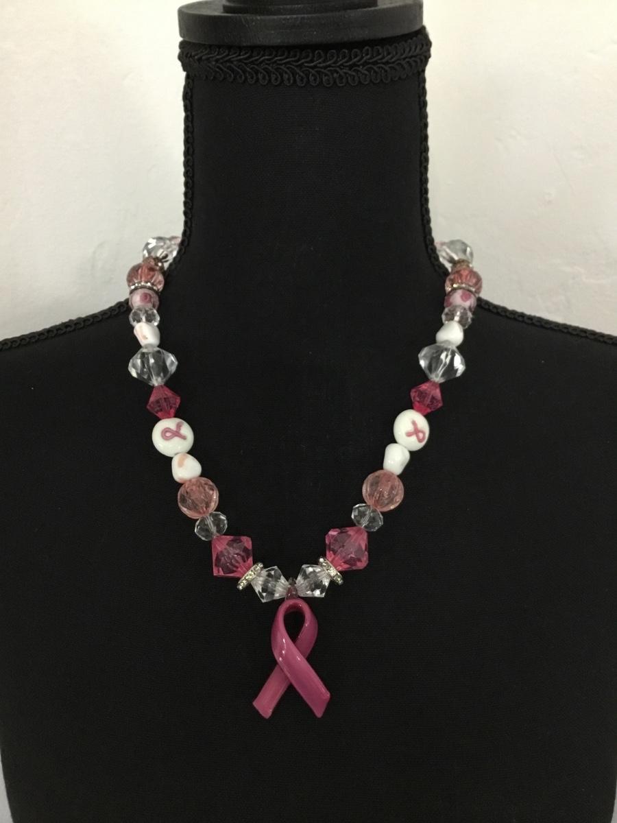 Silver tone vintage pink ribbon beaded statement necklace
