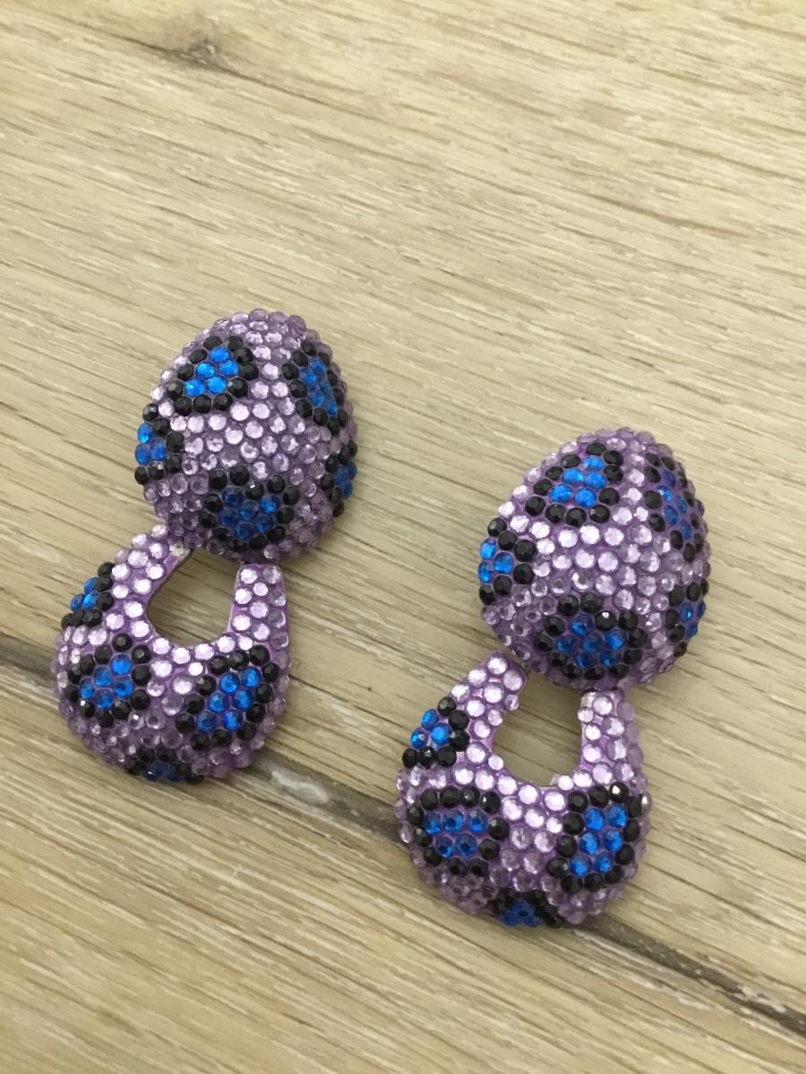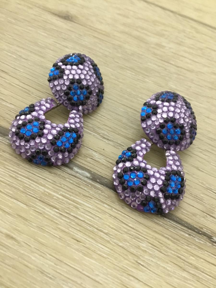Silver tone vintage purple and blue rhinestone clip on earrings