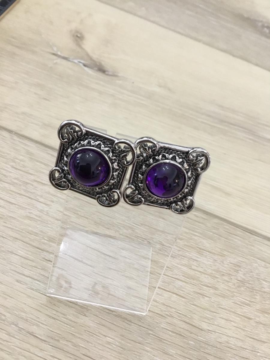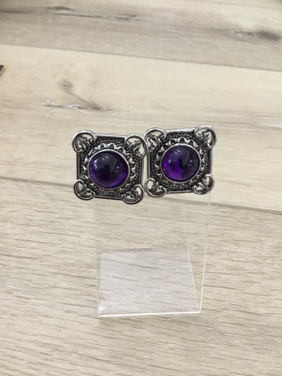 Silver tone vintage purple center clip on earrings