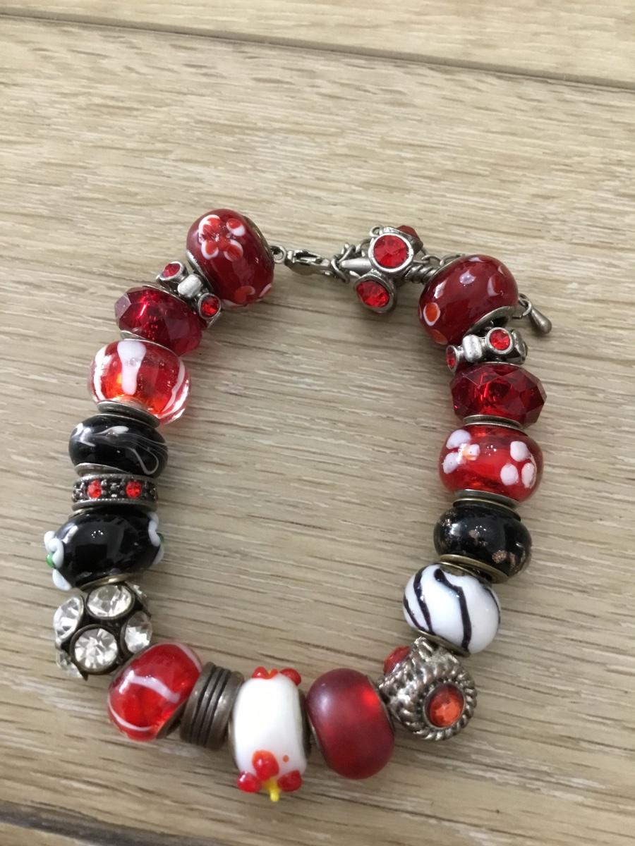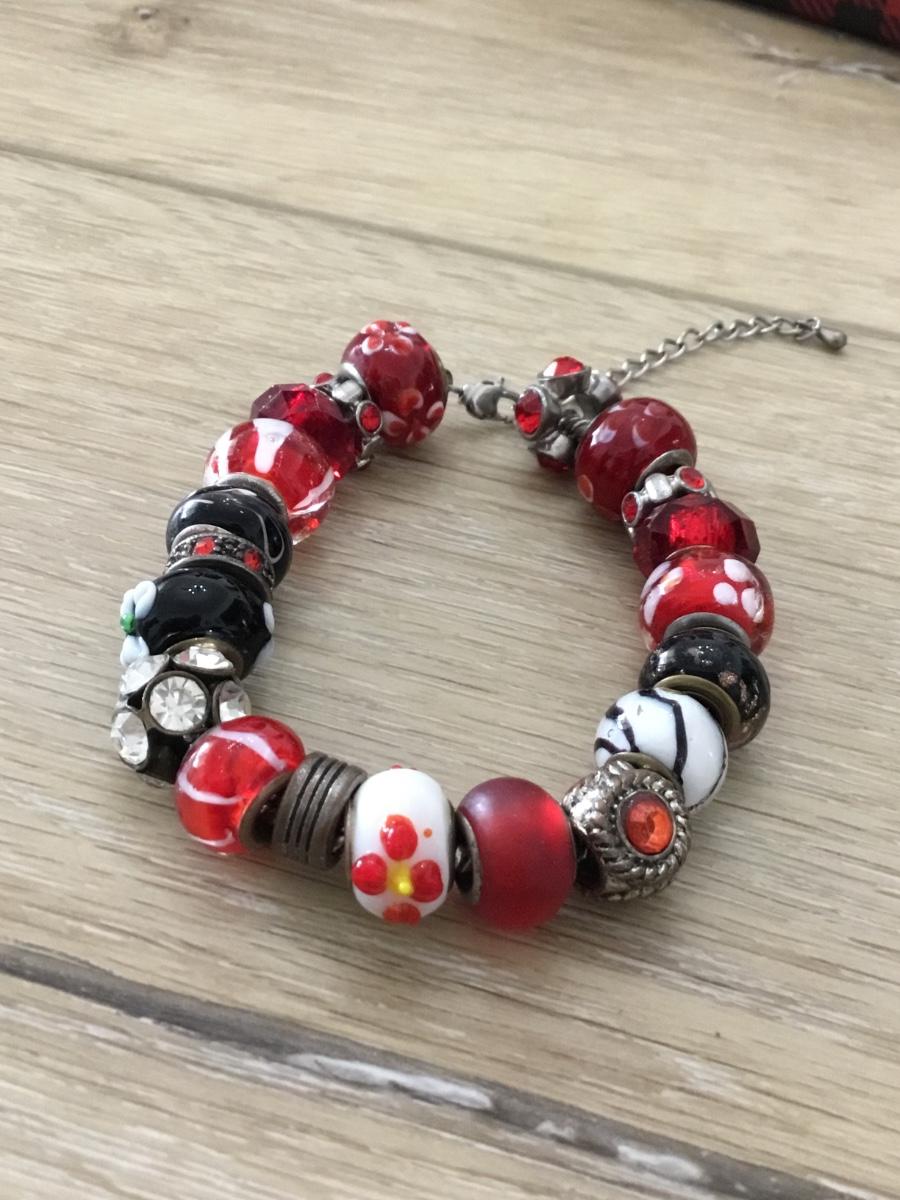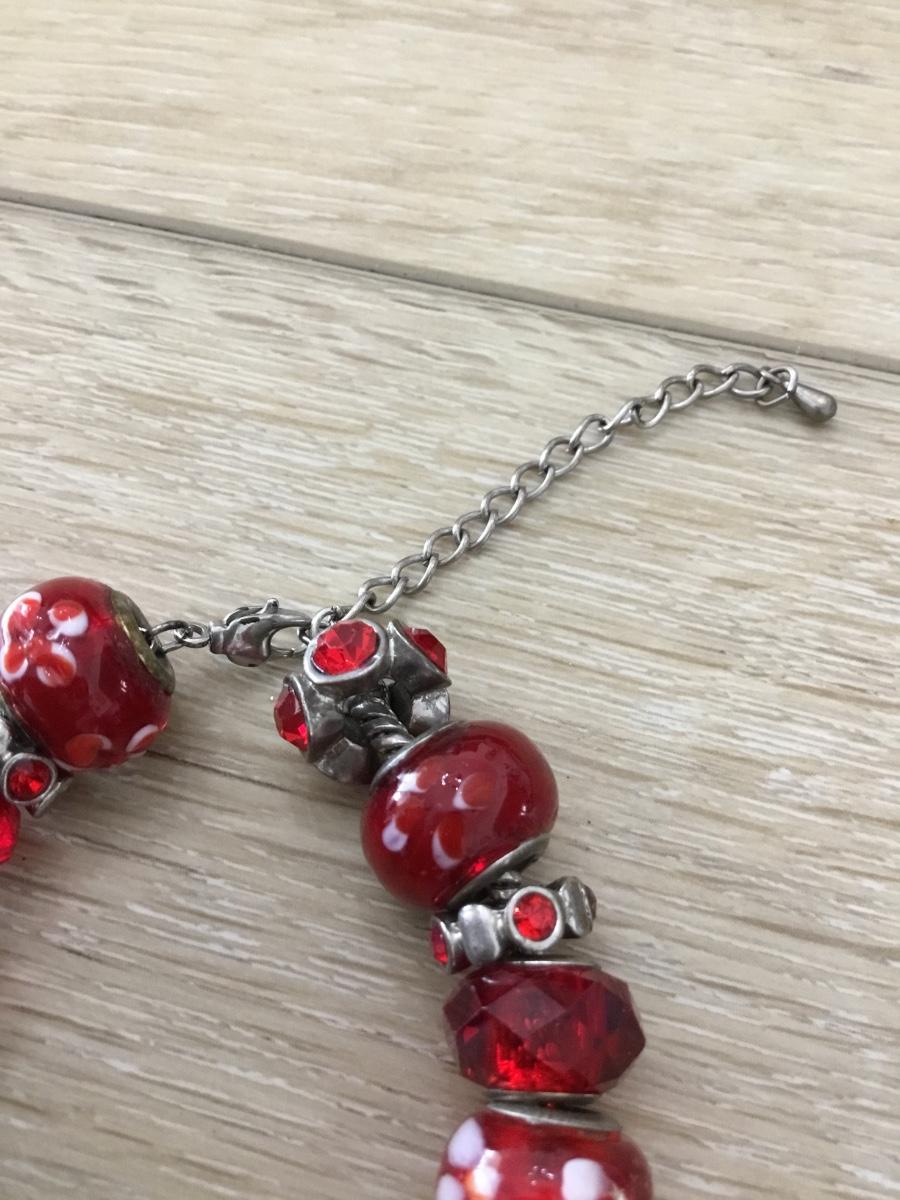 Silver tone vintage red beaded bracelet