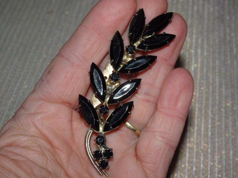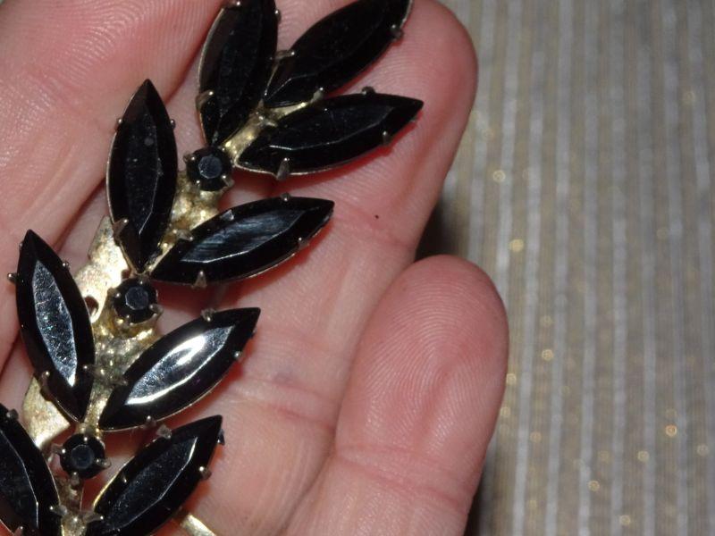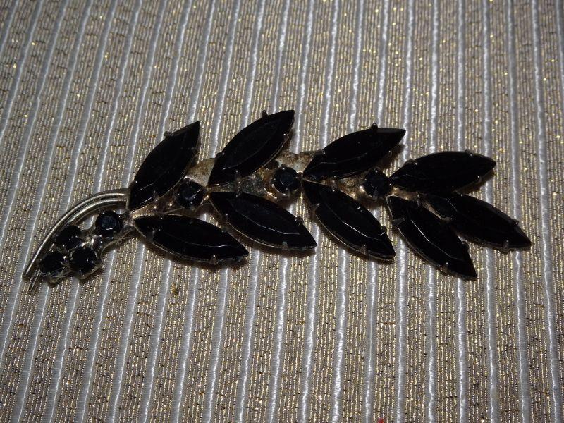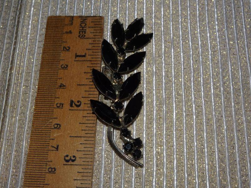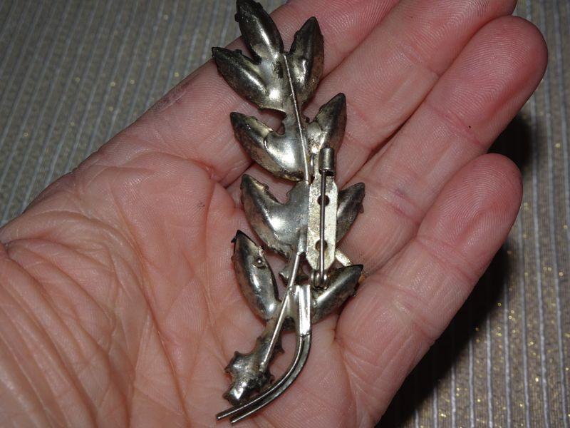 Silver Tone Vintage Rhinestone Brooch, Leaf