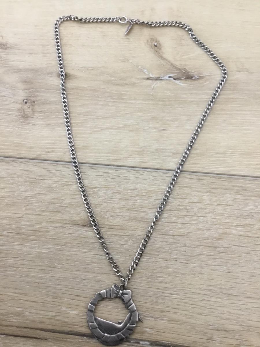 Silver tone Whiting Davis marked duck pendant necklace