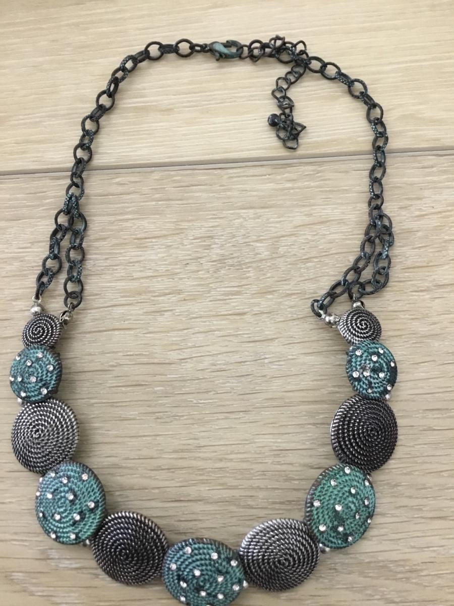 Silver tone with blue tone fashion necklace