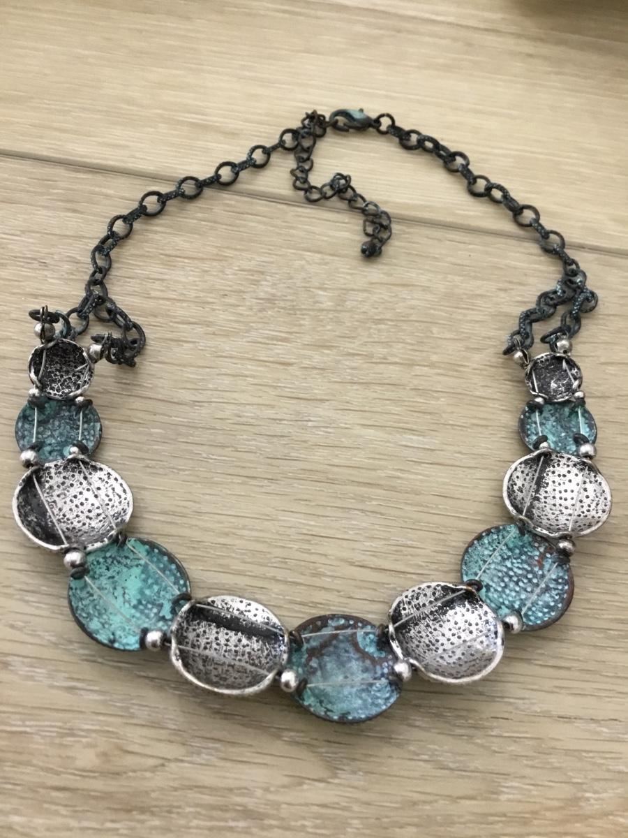 Silver tone with blue tone fashion necklace