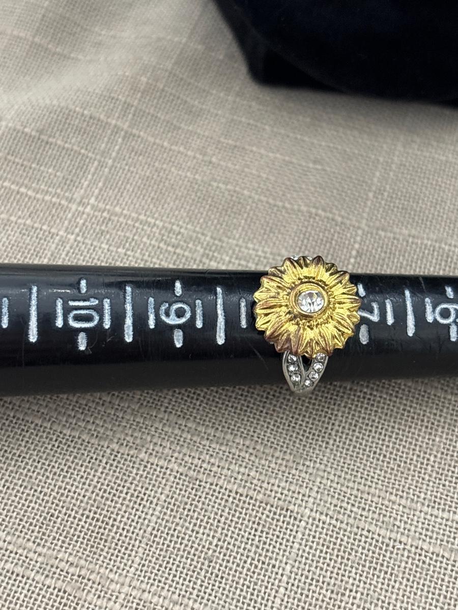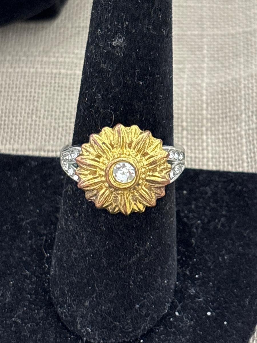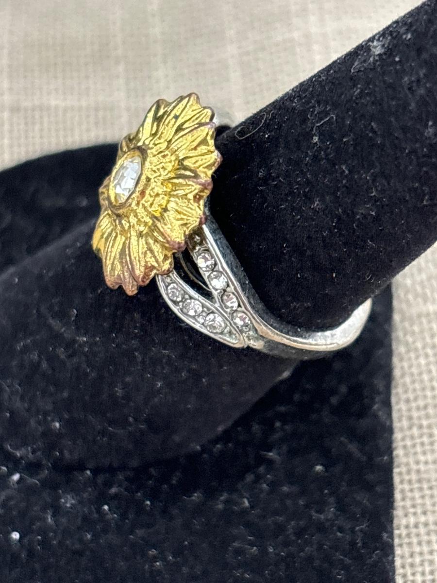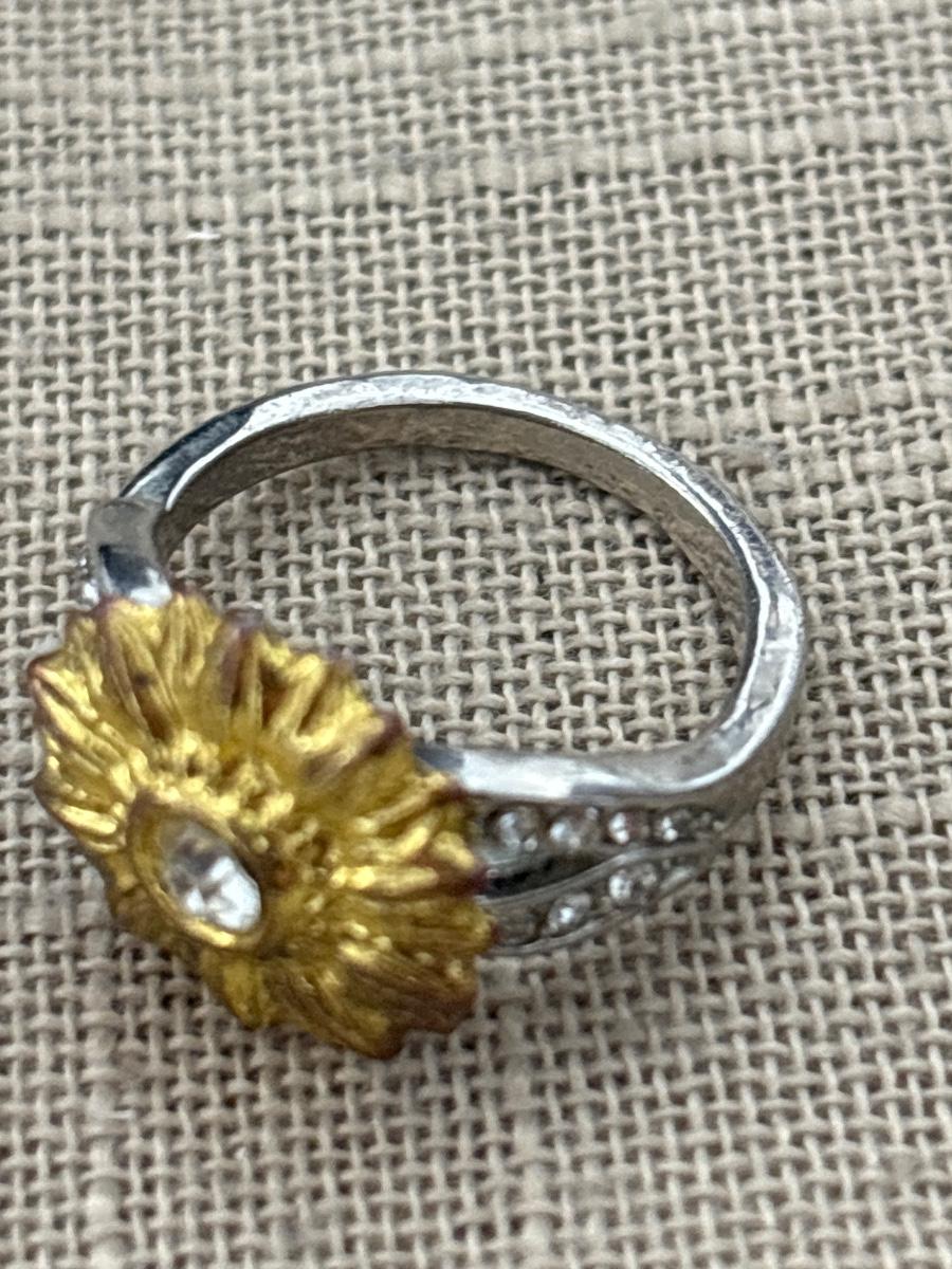 Silver tone yellow flower ring