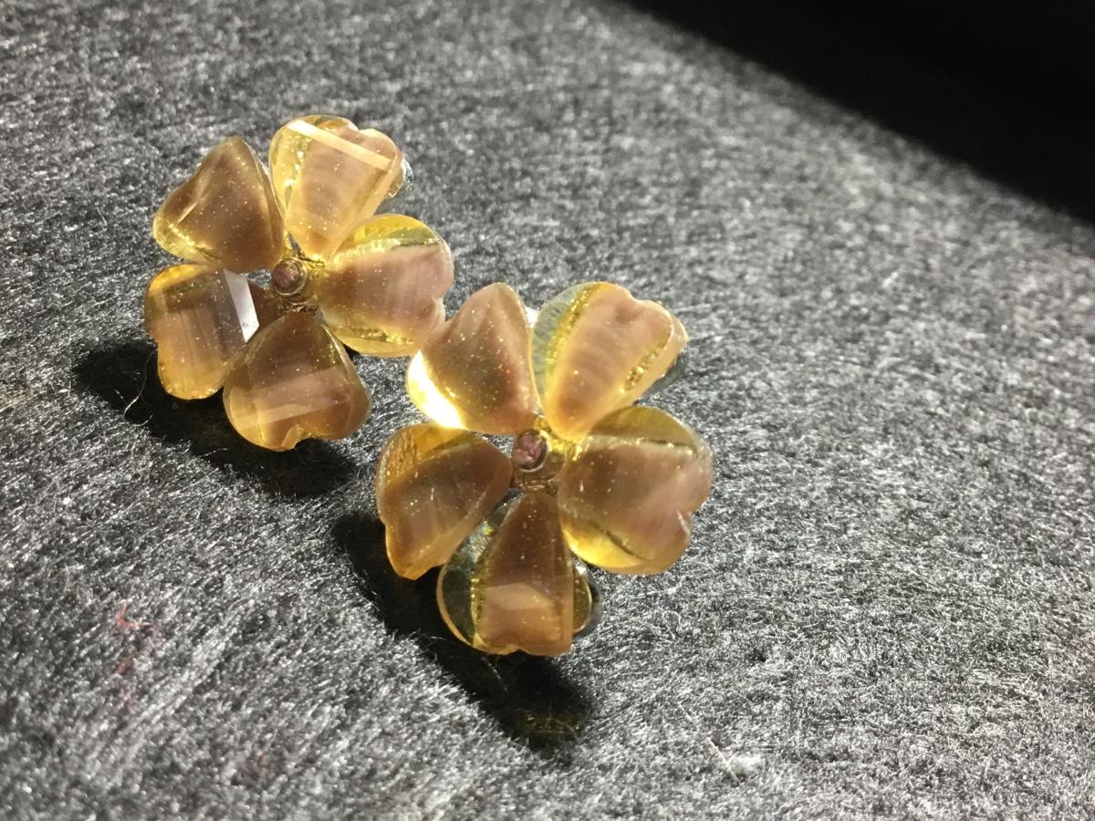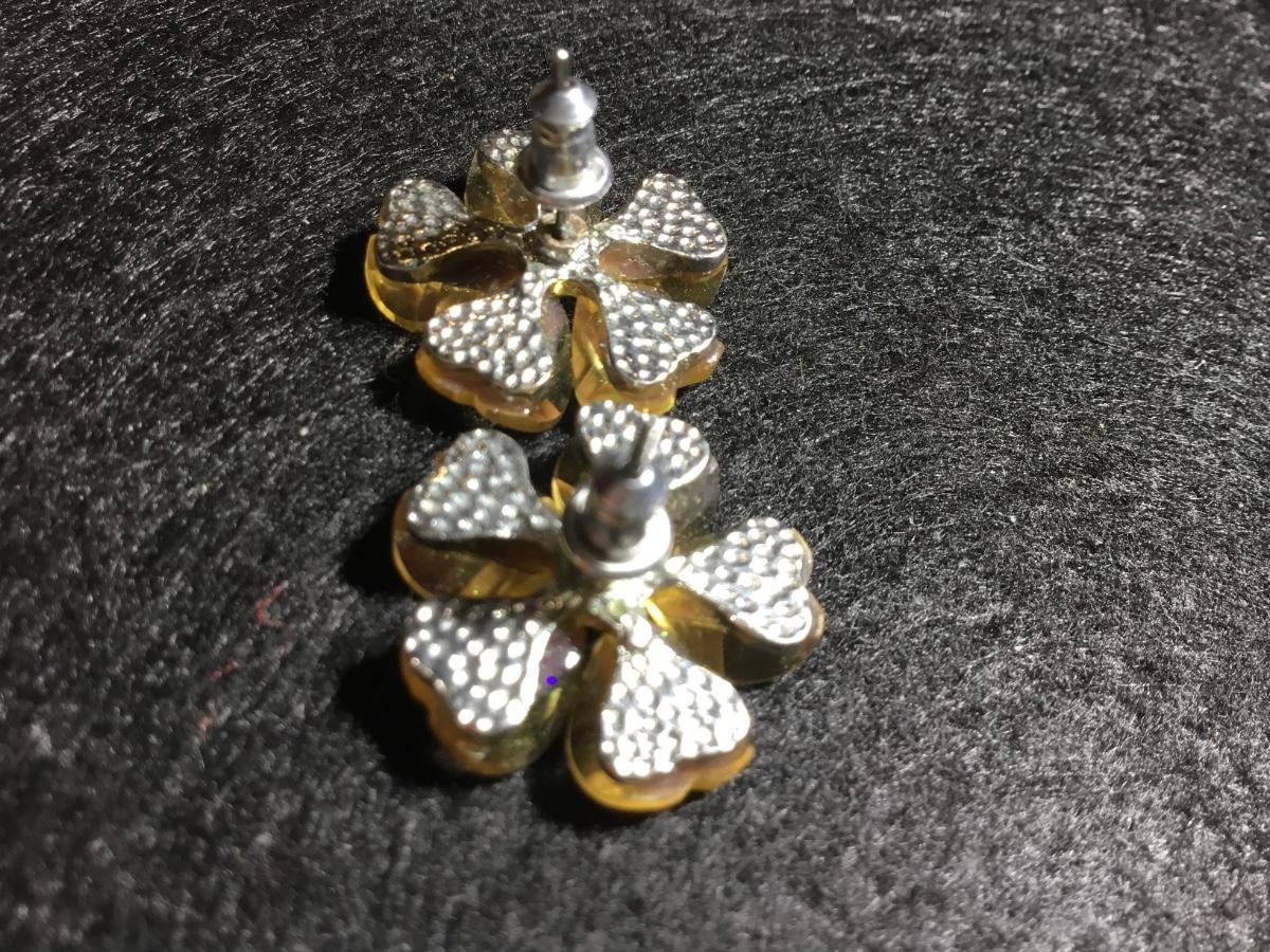 Silver tone yellow flower sparkle earrings