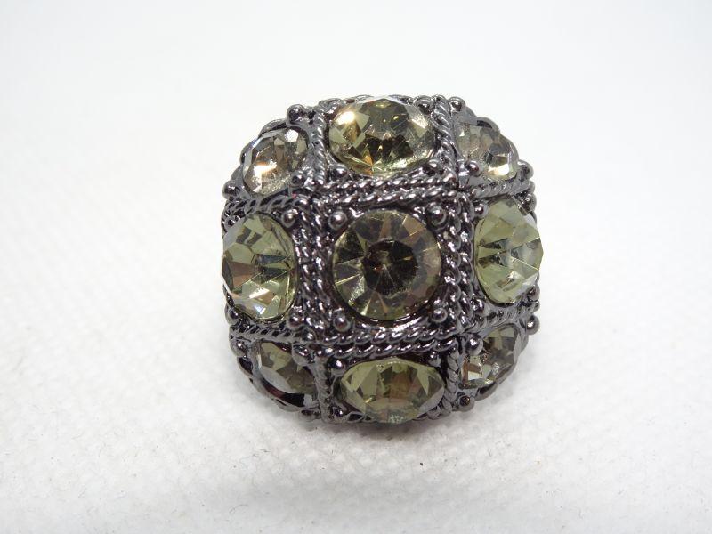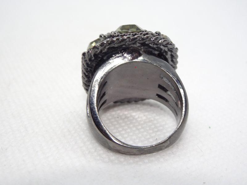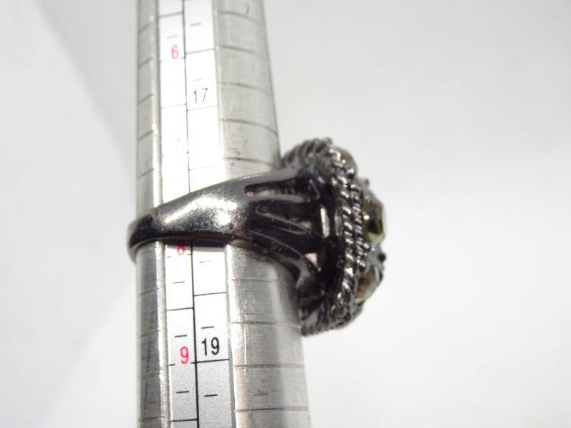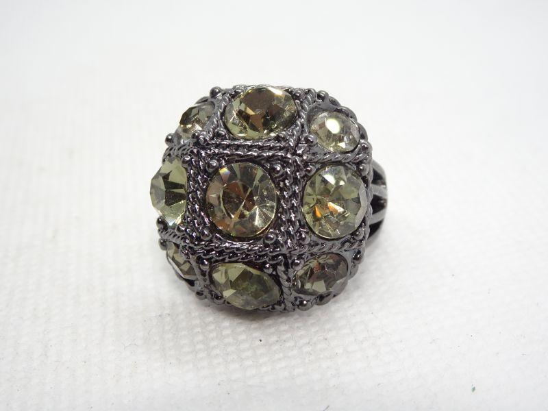 Silver Tone Yellowish Citrine Colored Rhinestone Ring
