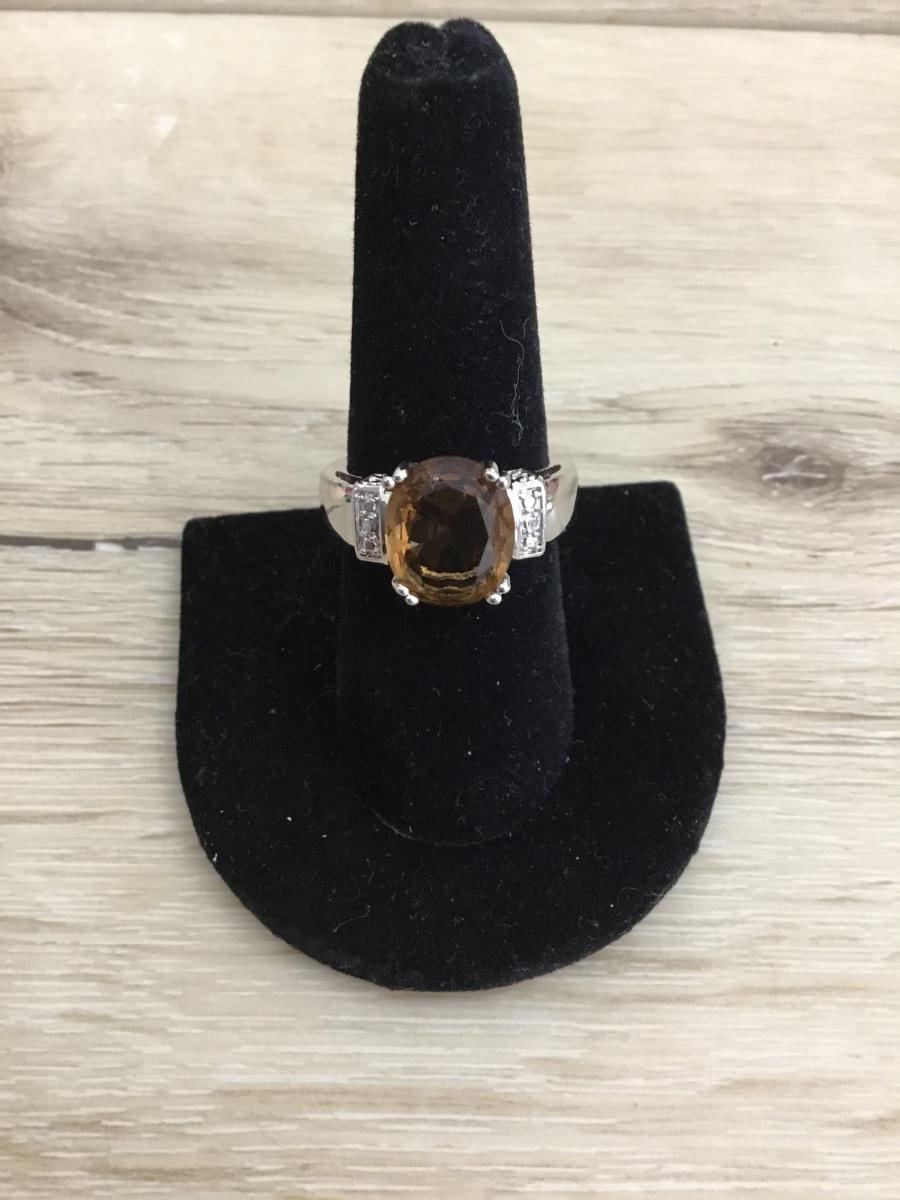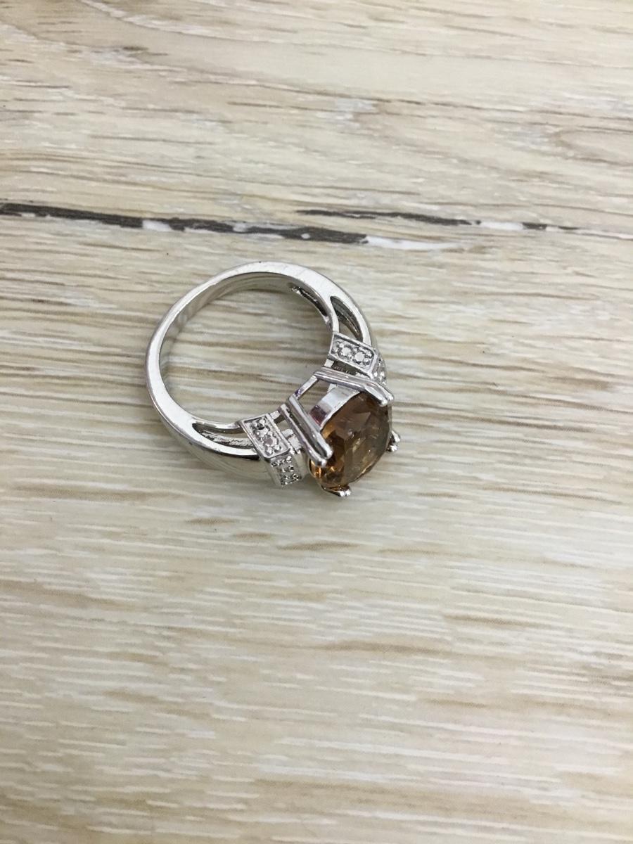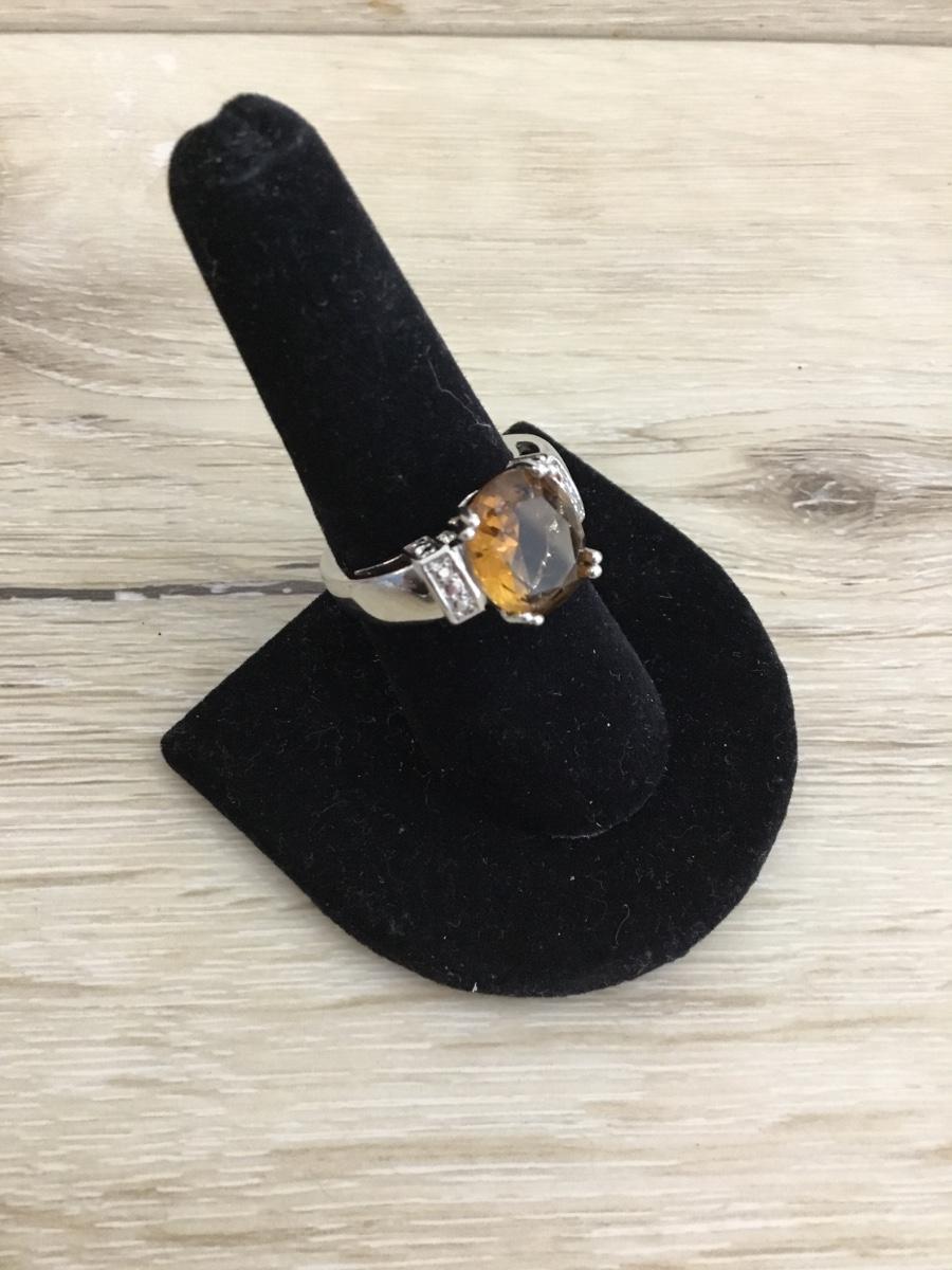 Silver toned & Amber crystal stone fashion ring
