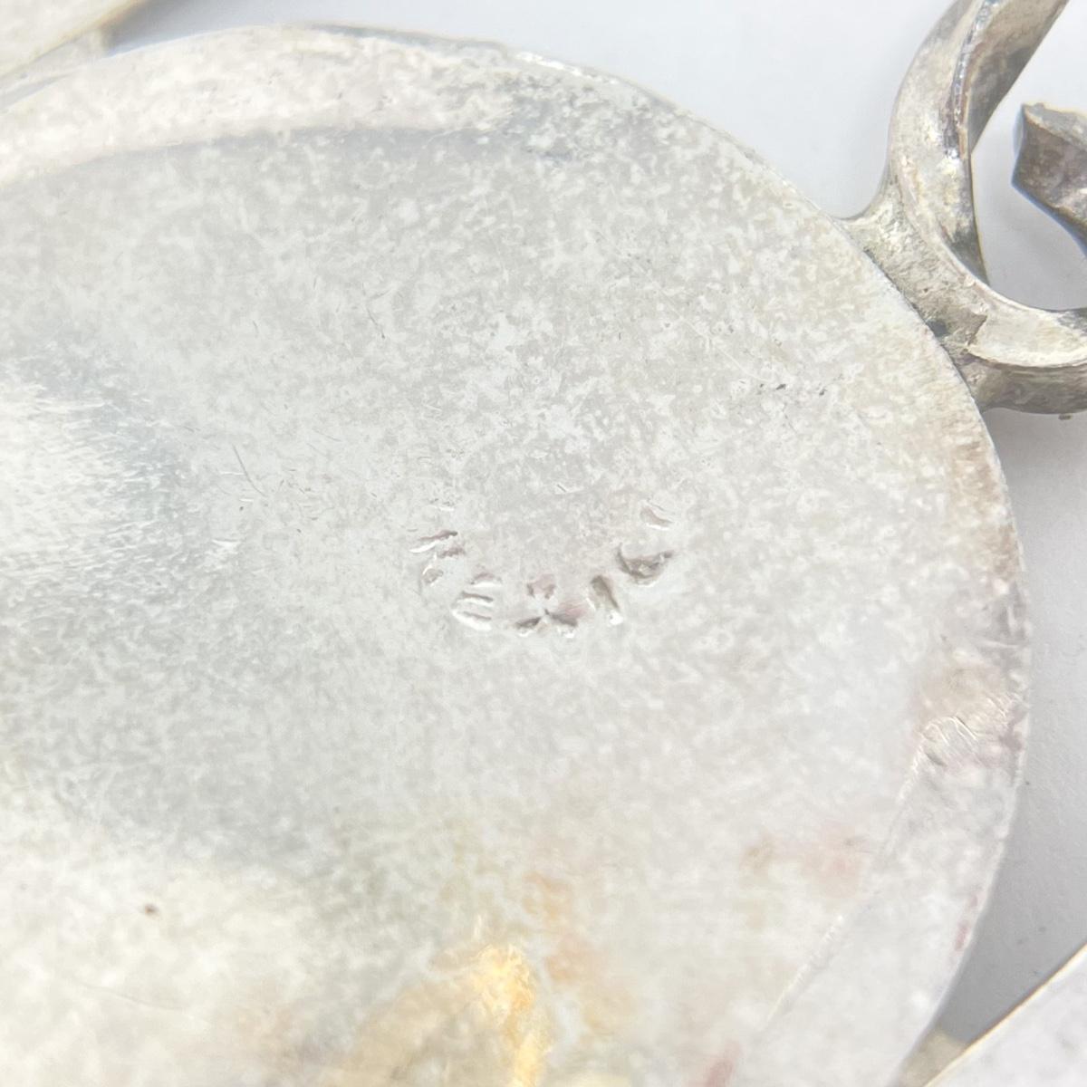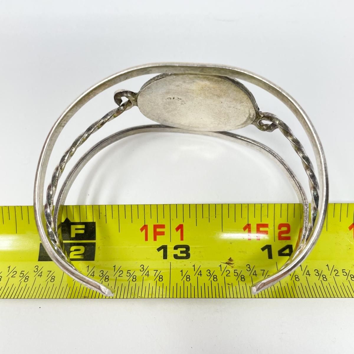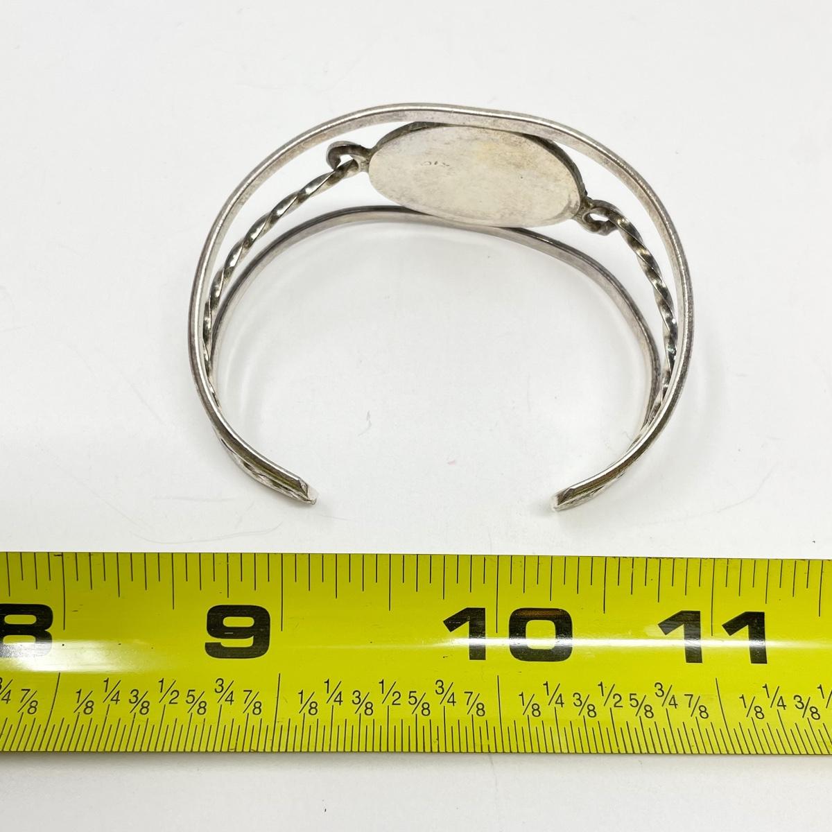 In decent condition although there appears to be a scratch across the flower and it is a bit misshapen. Inside diameter measures approx 2 1/4”. Inside stamp appears to read “MEXICO”