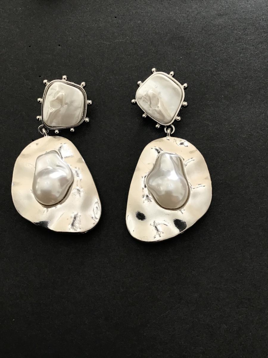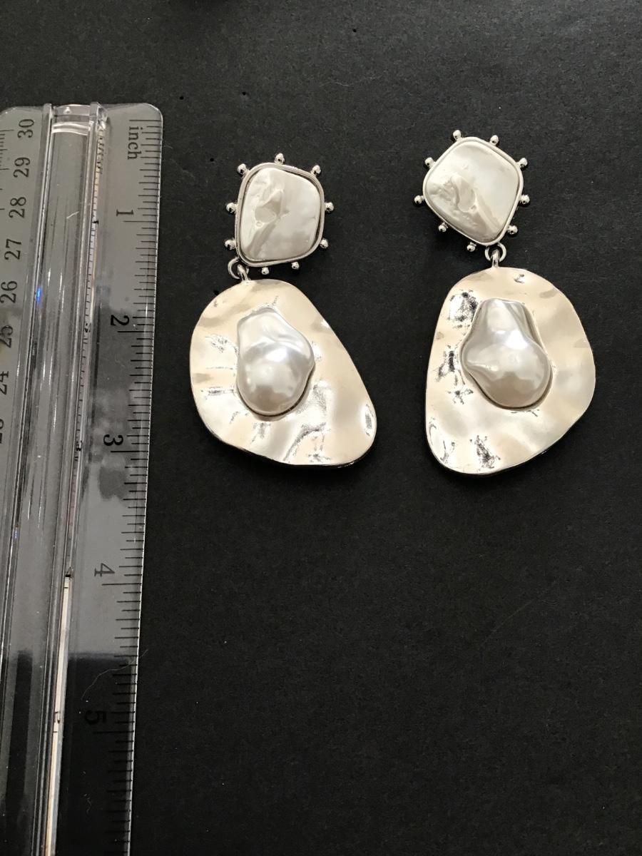 Silver toned, chunky, faux, pearl dangle earrings. Please see attached photos.