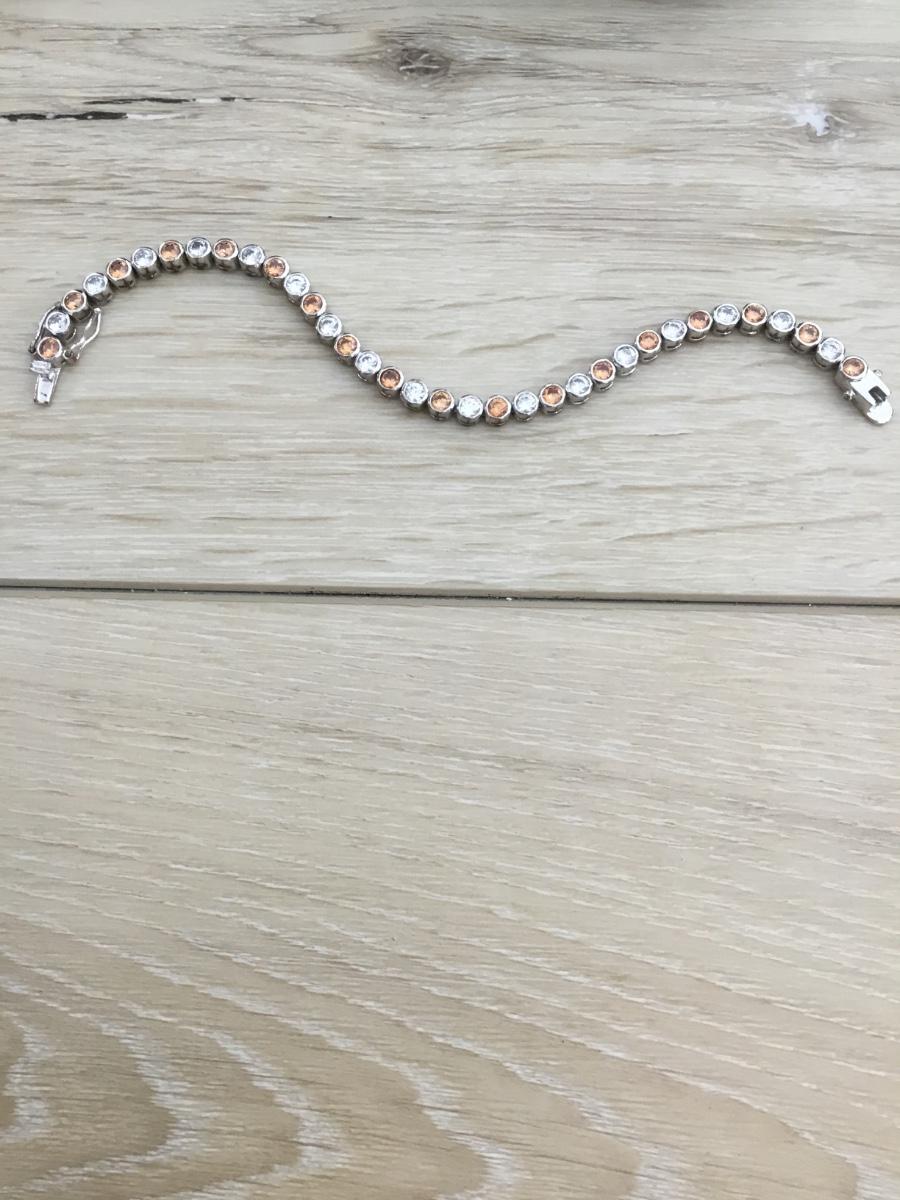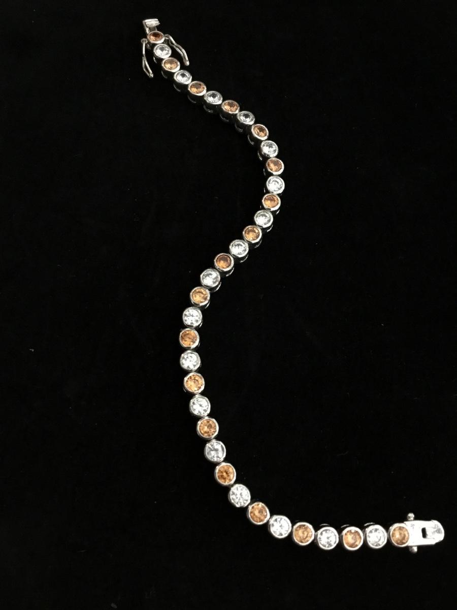 Silver toned, clear, orange, rhinestone tennis bracelet