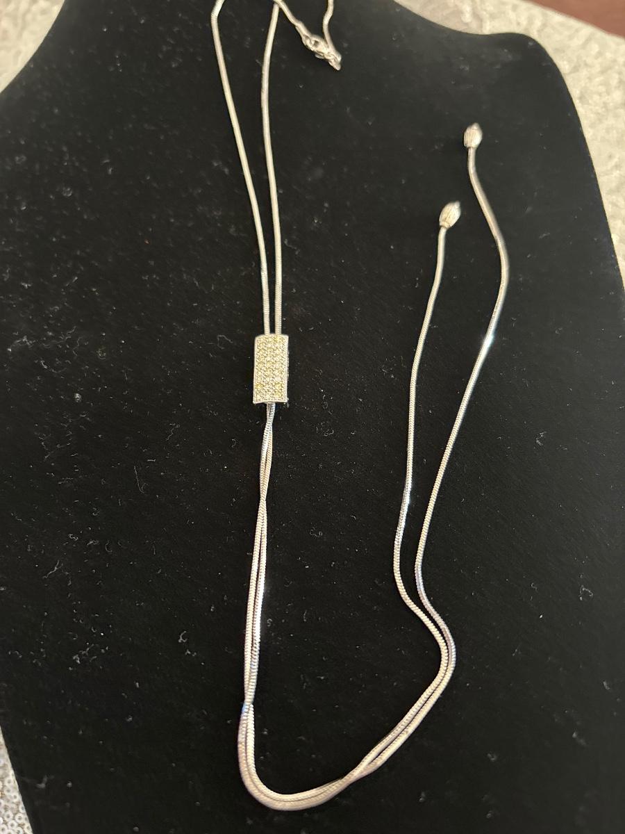 Silver toned, dainty choker slider necklace