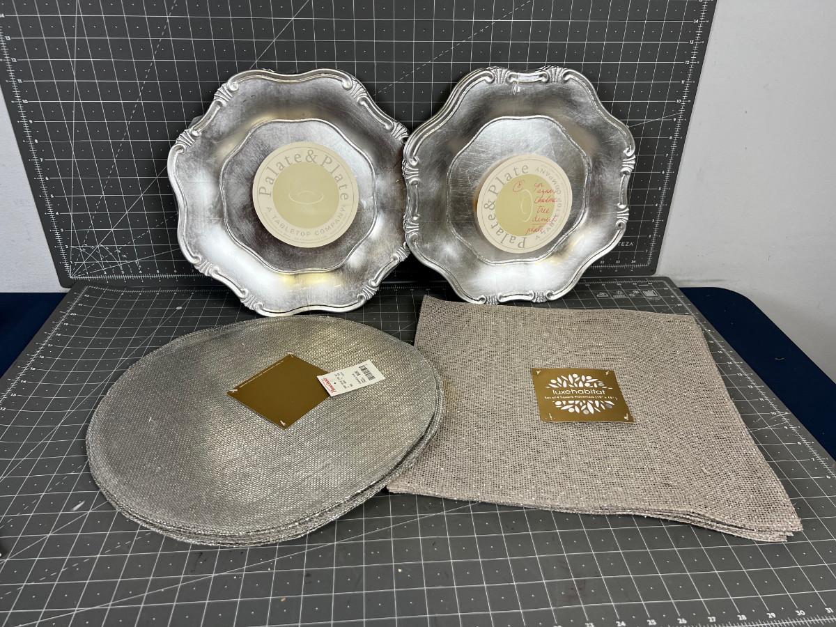 Silver Toned Dinner Placemats and Chargers 4 ea.