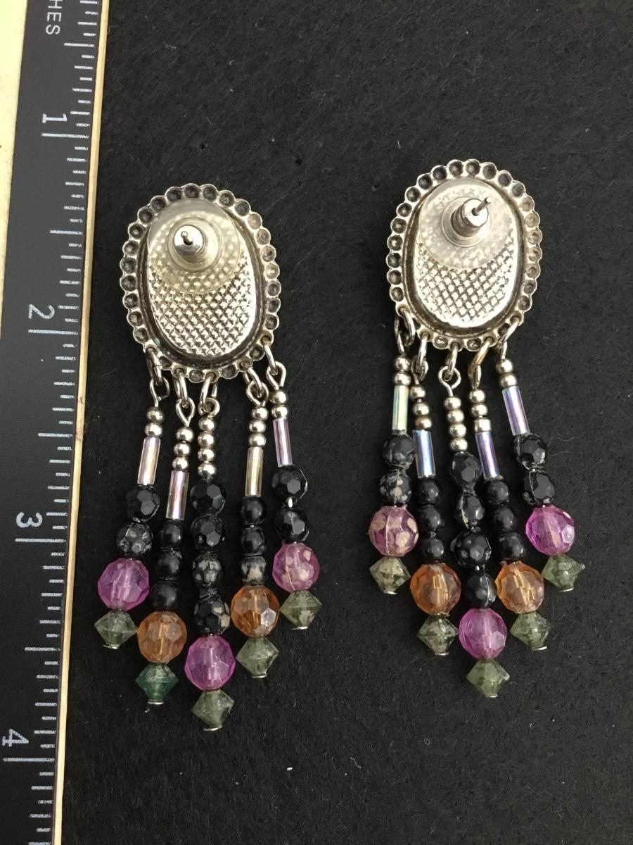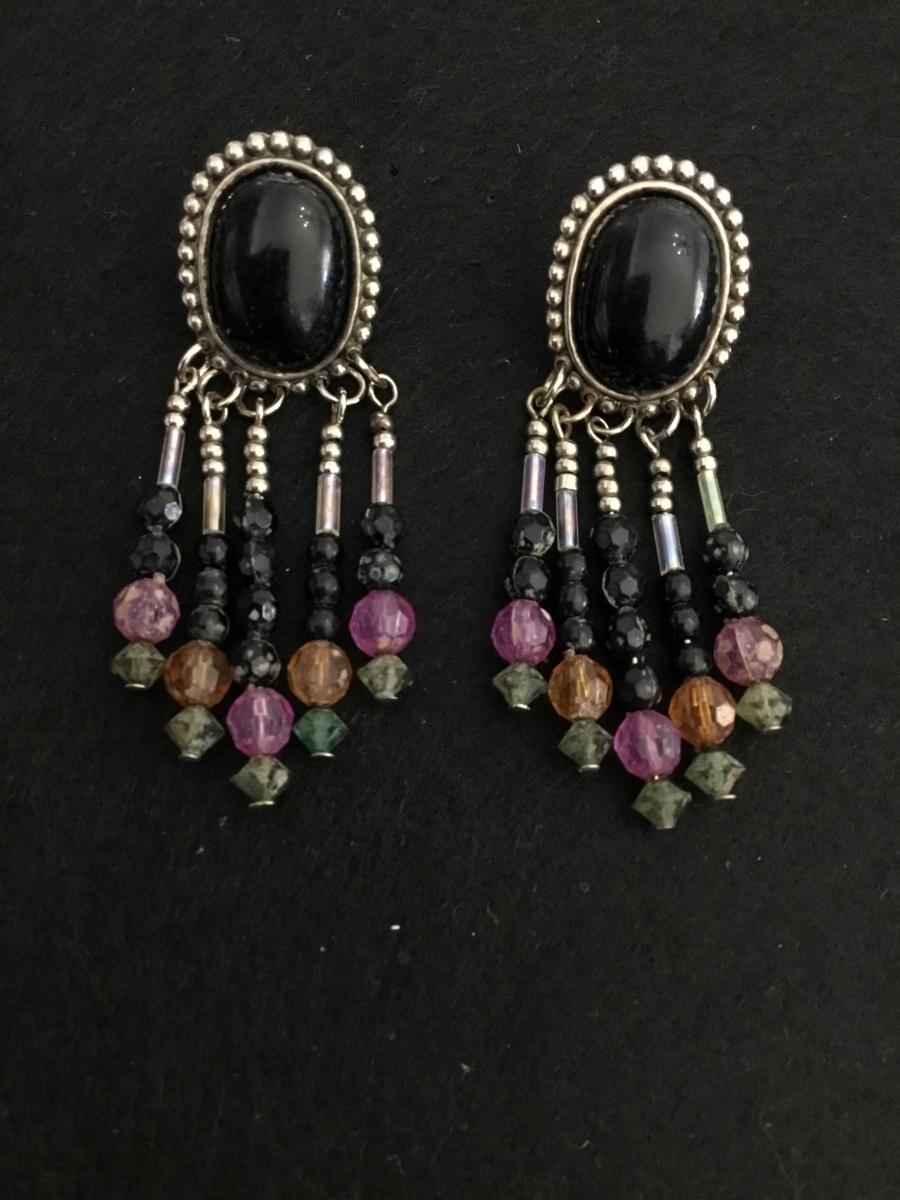 Silver toned faux Black onyx, southwestern style stud, drop dangle earrings