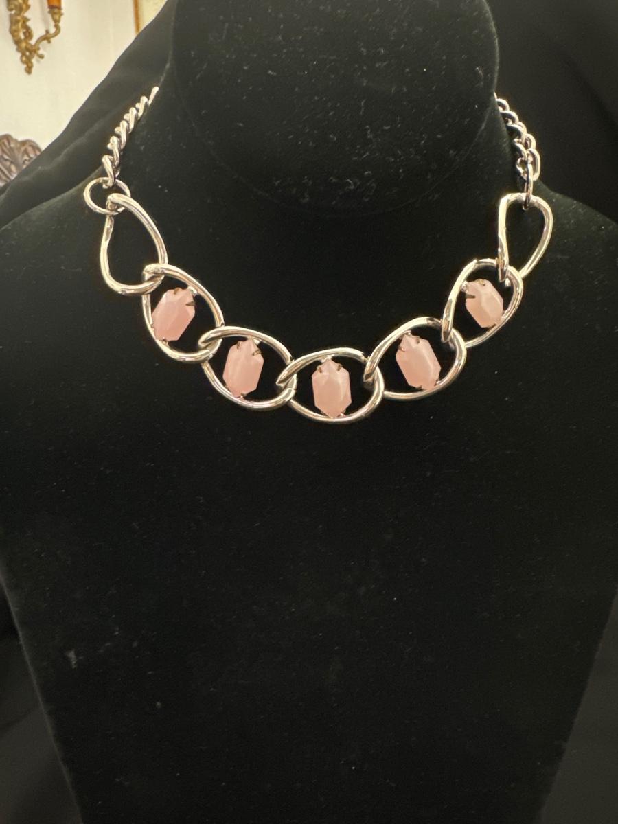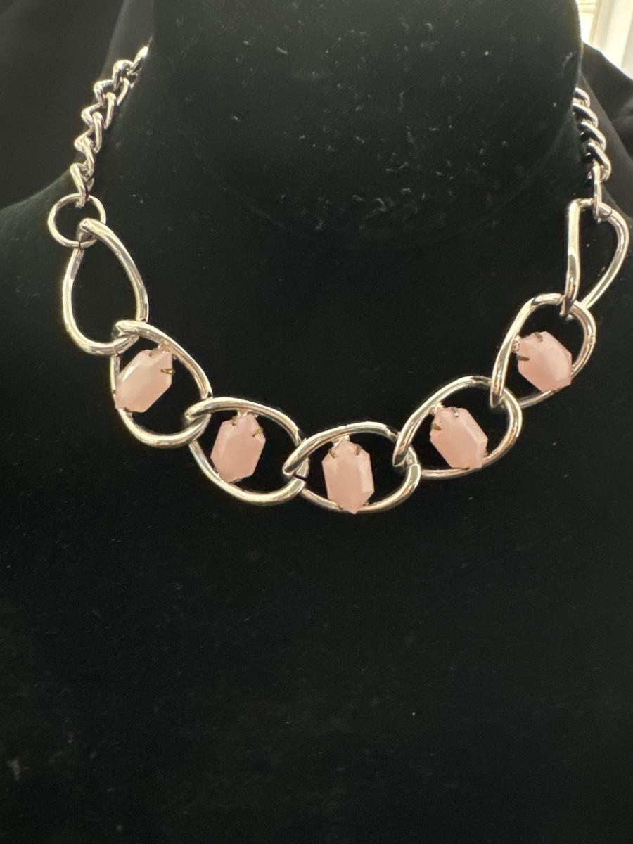 Silver toned faux pink stone chain necklace