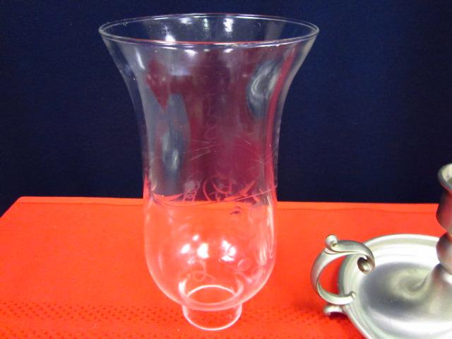 Silver Toned/ Glass Candle holder with etched glass