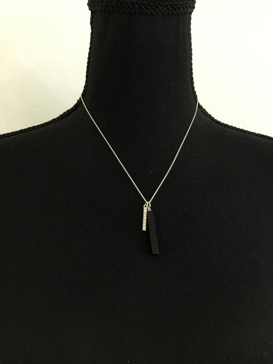 Silver toned LA CN rhinestone Black agate dainty necklace
