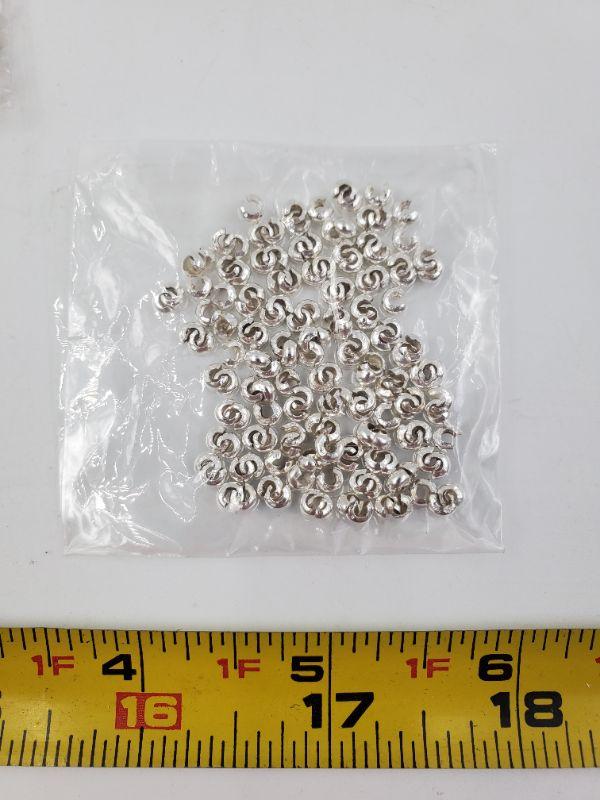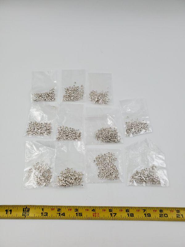 11 bags of silver toned metal crimps, may be opened but in like new condition.