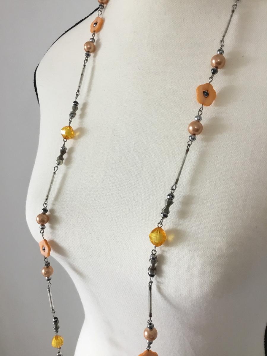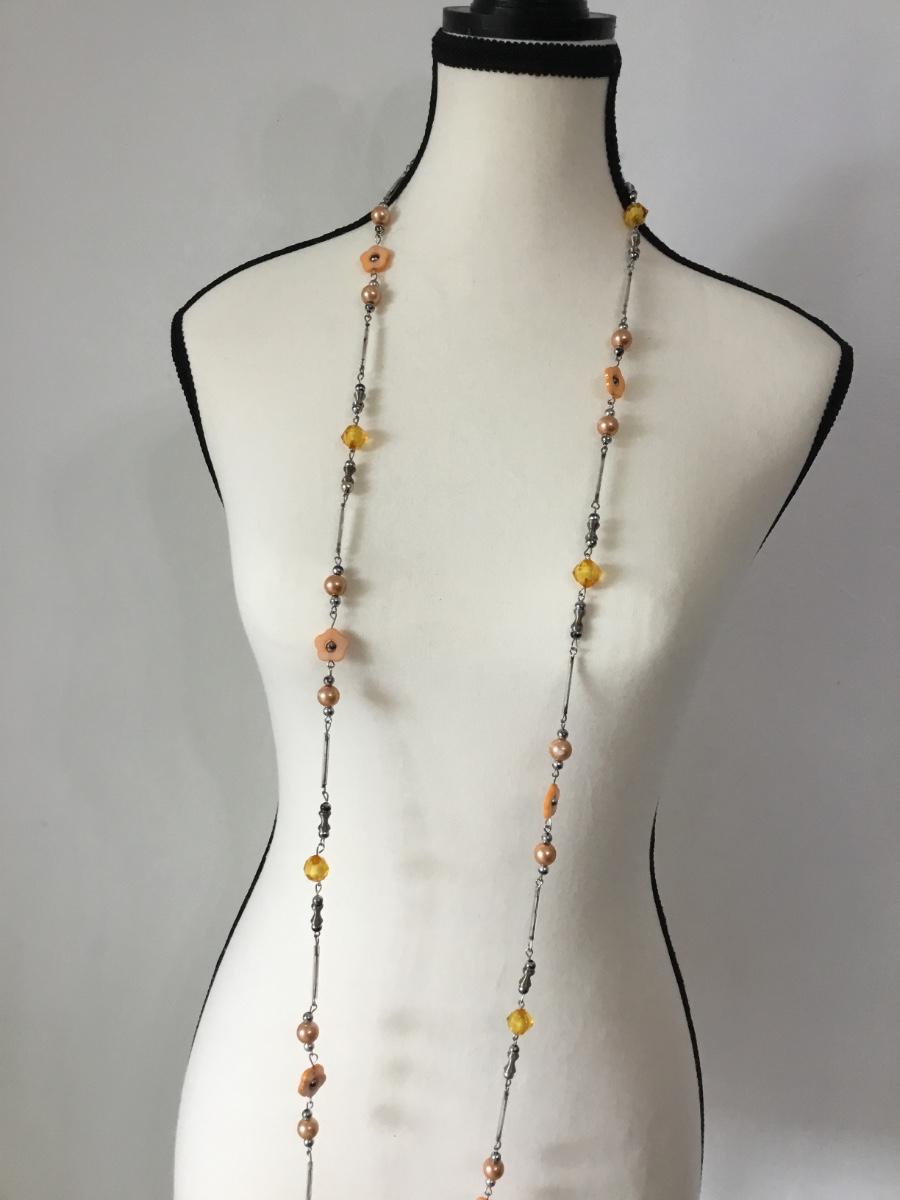 Silver toned necklace with glass tubing in between shell flower accent statement necklace