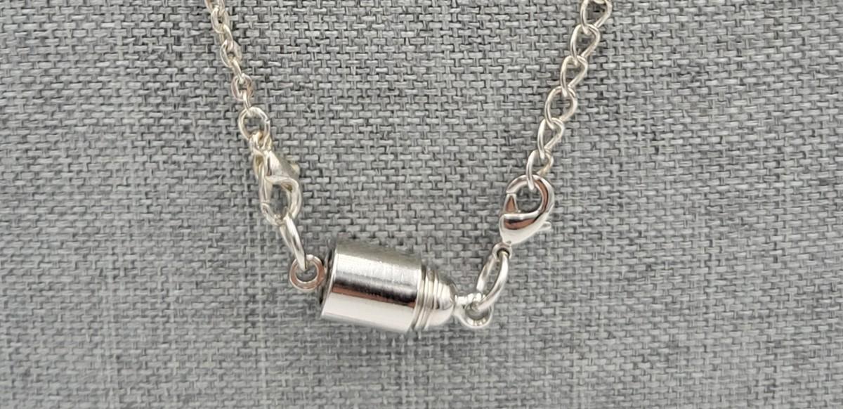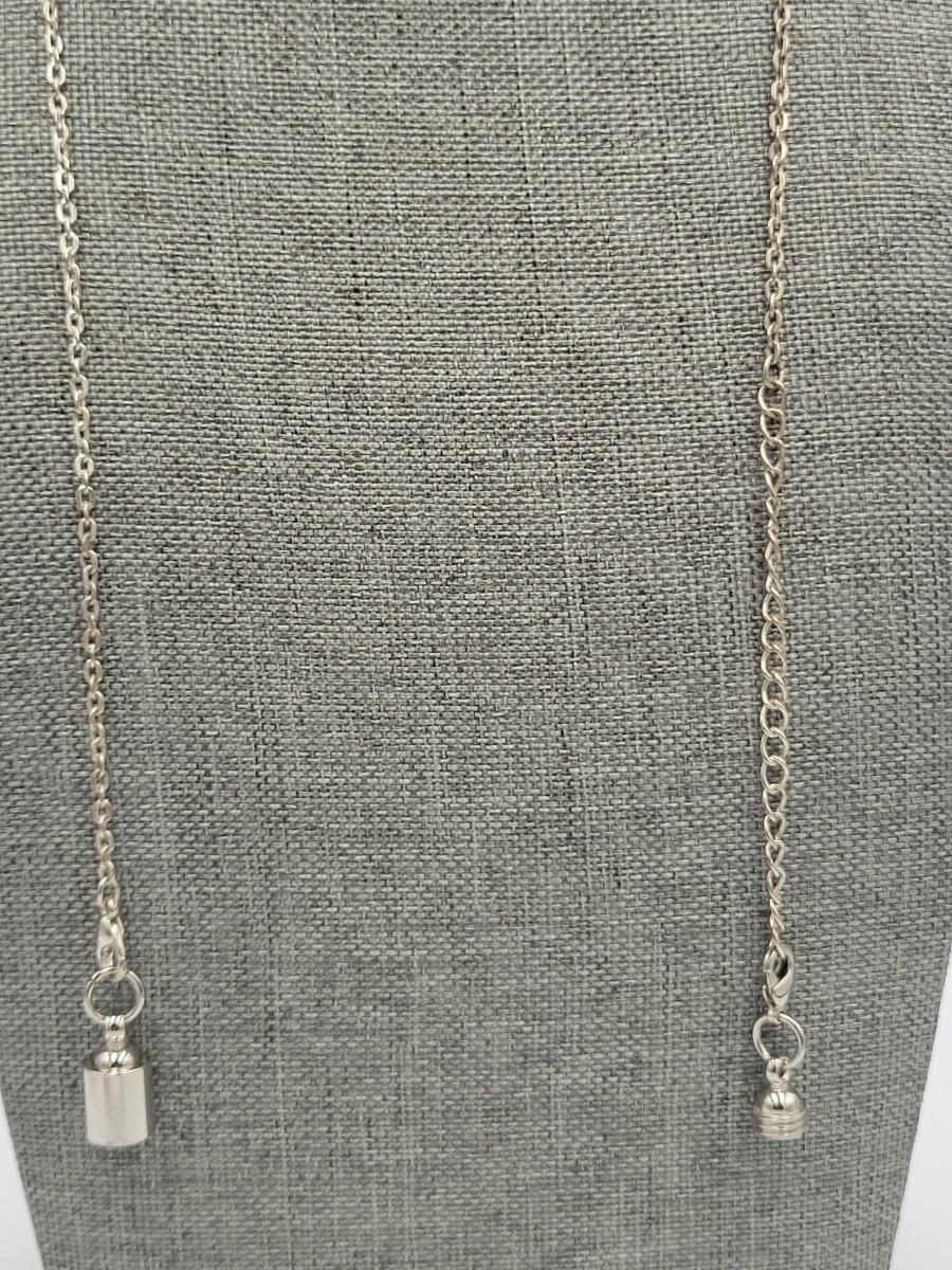 Chain is 19" long and does appear to have been repaired at some point. The last 2.75" of the chair are of a different size than the rest of the chain.