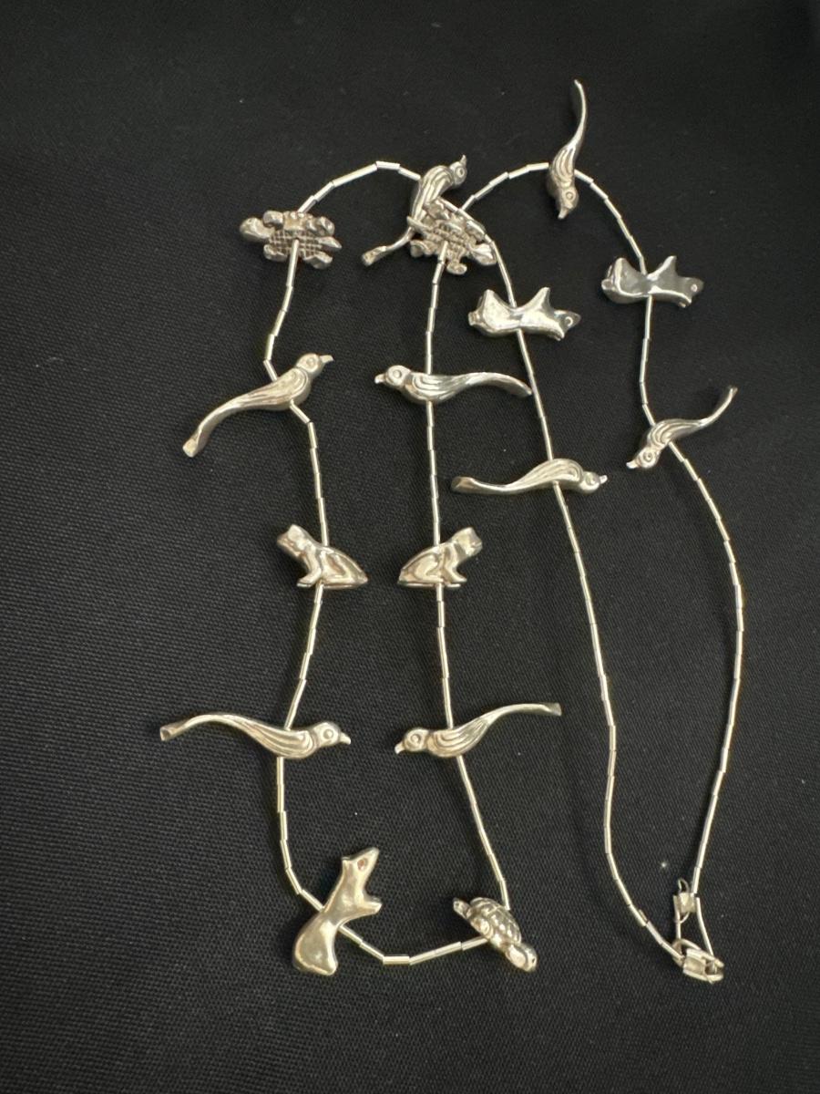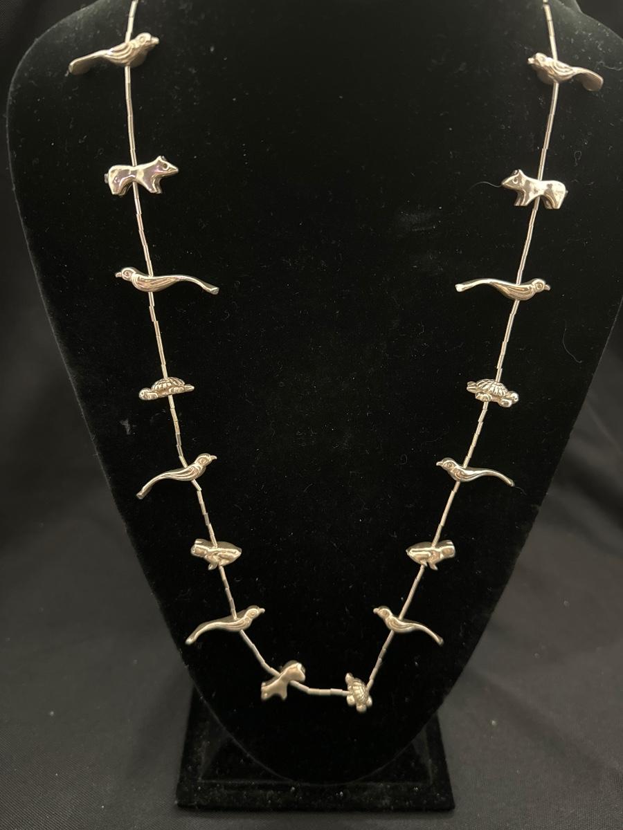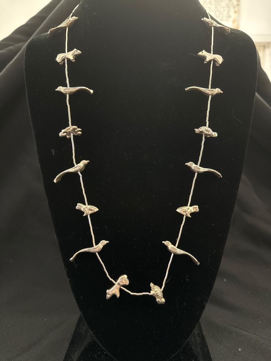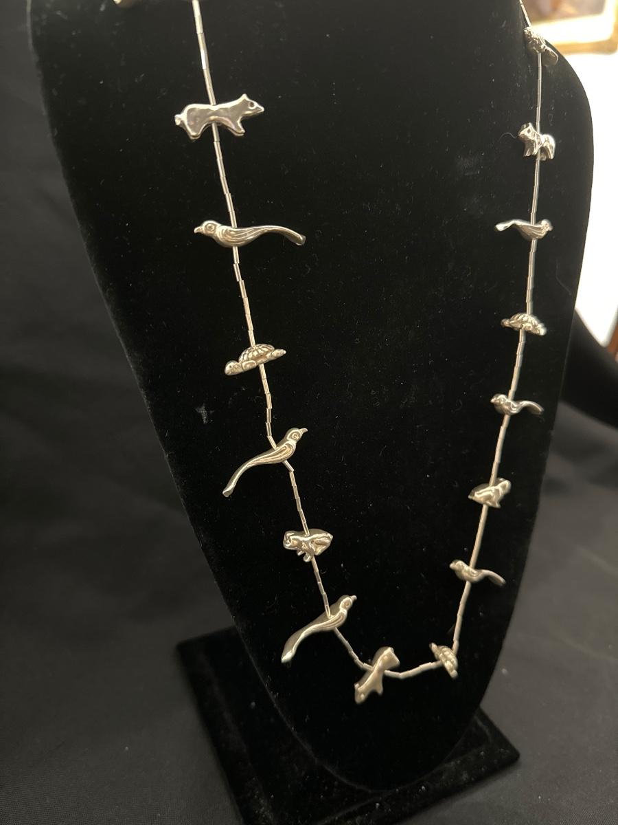 Silver toned necklace with silver tone animals