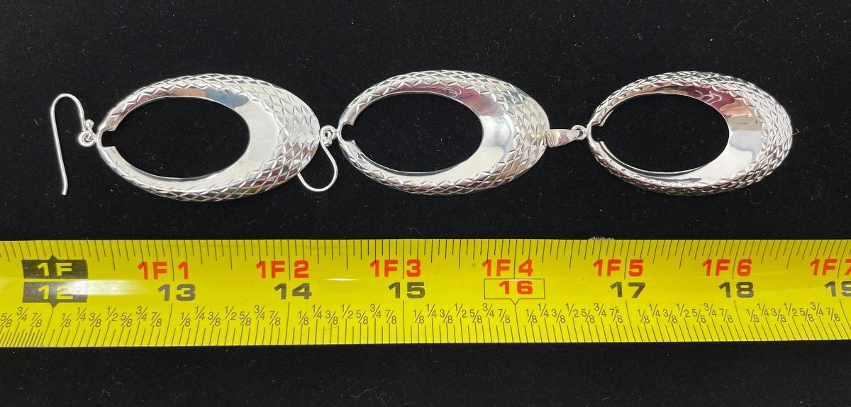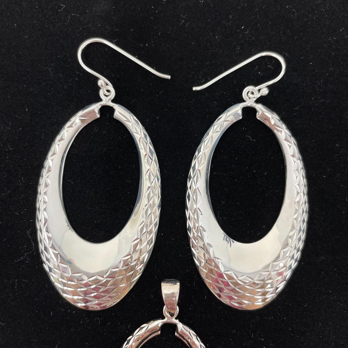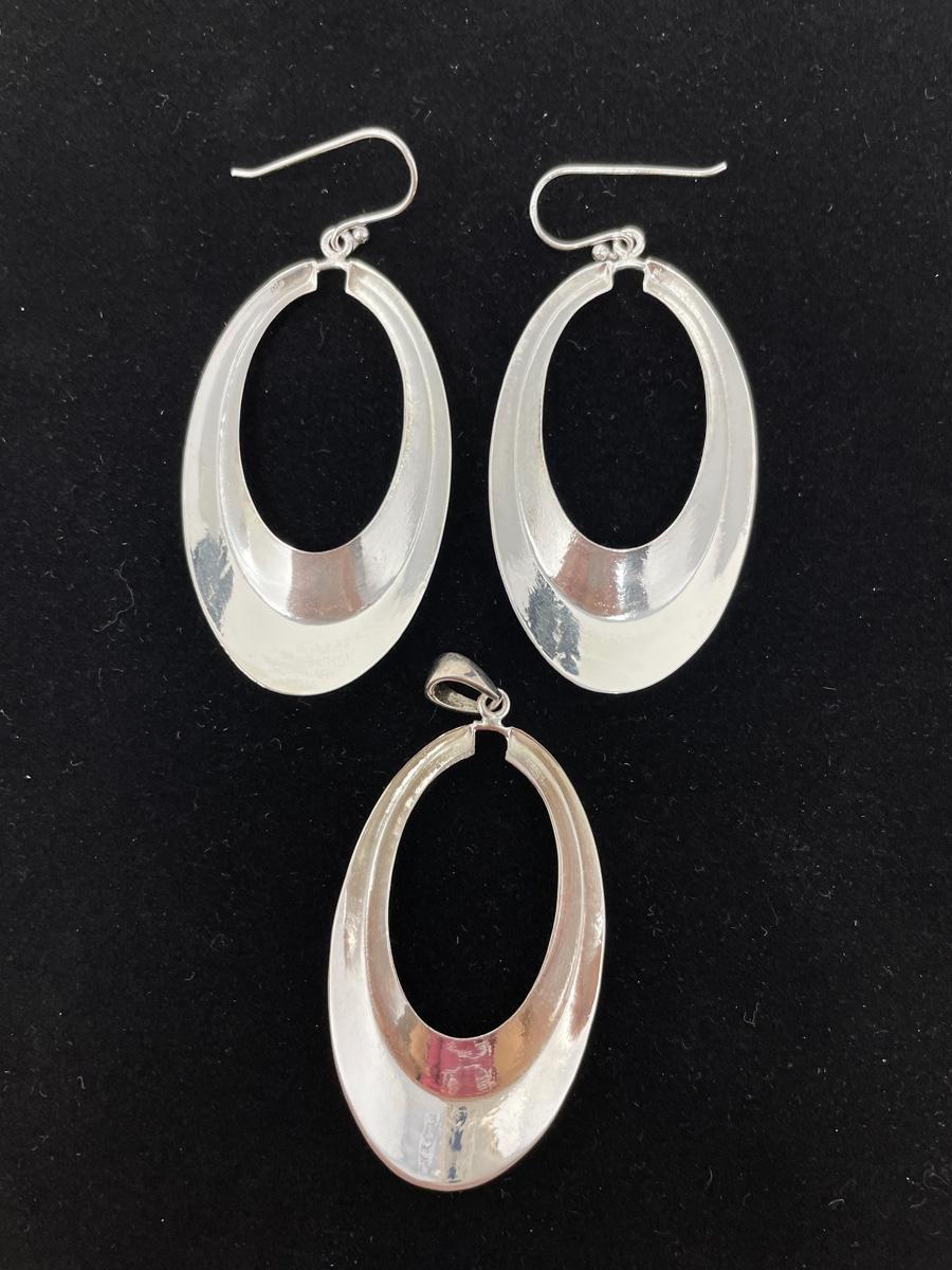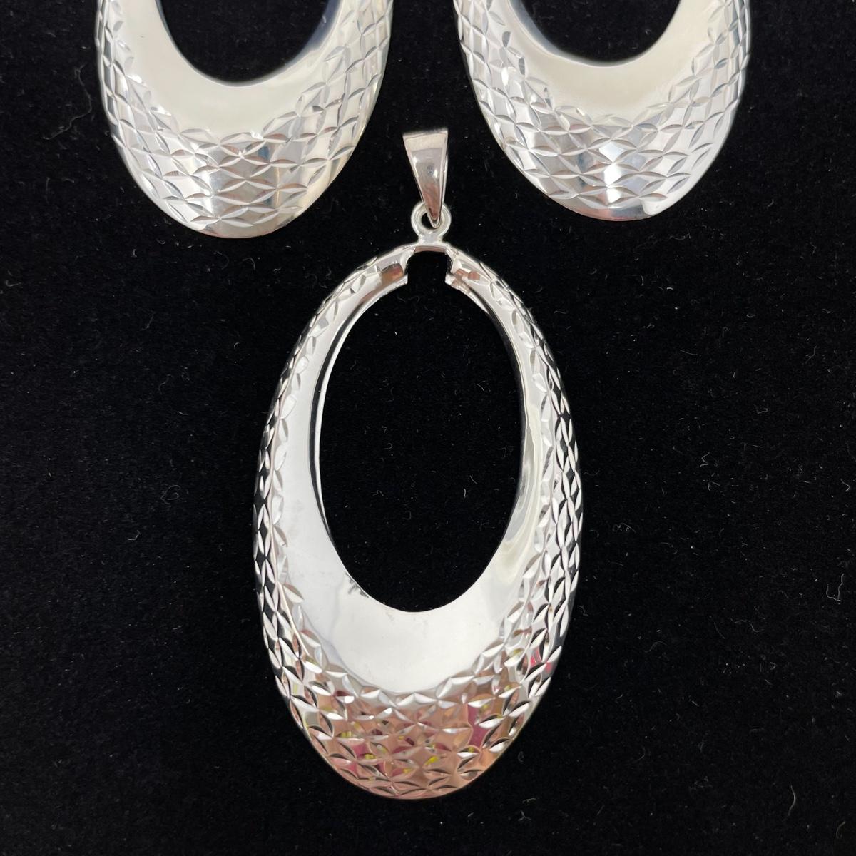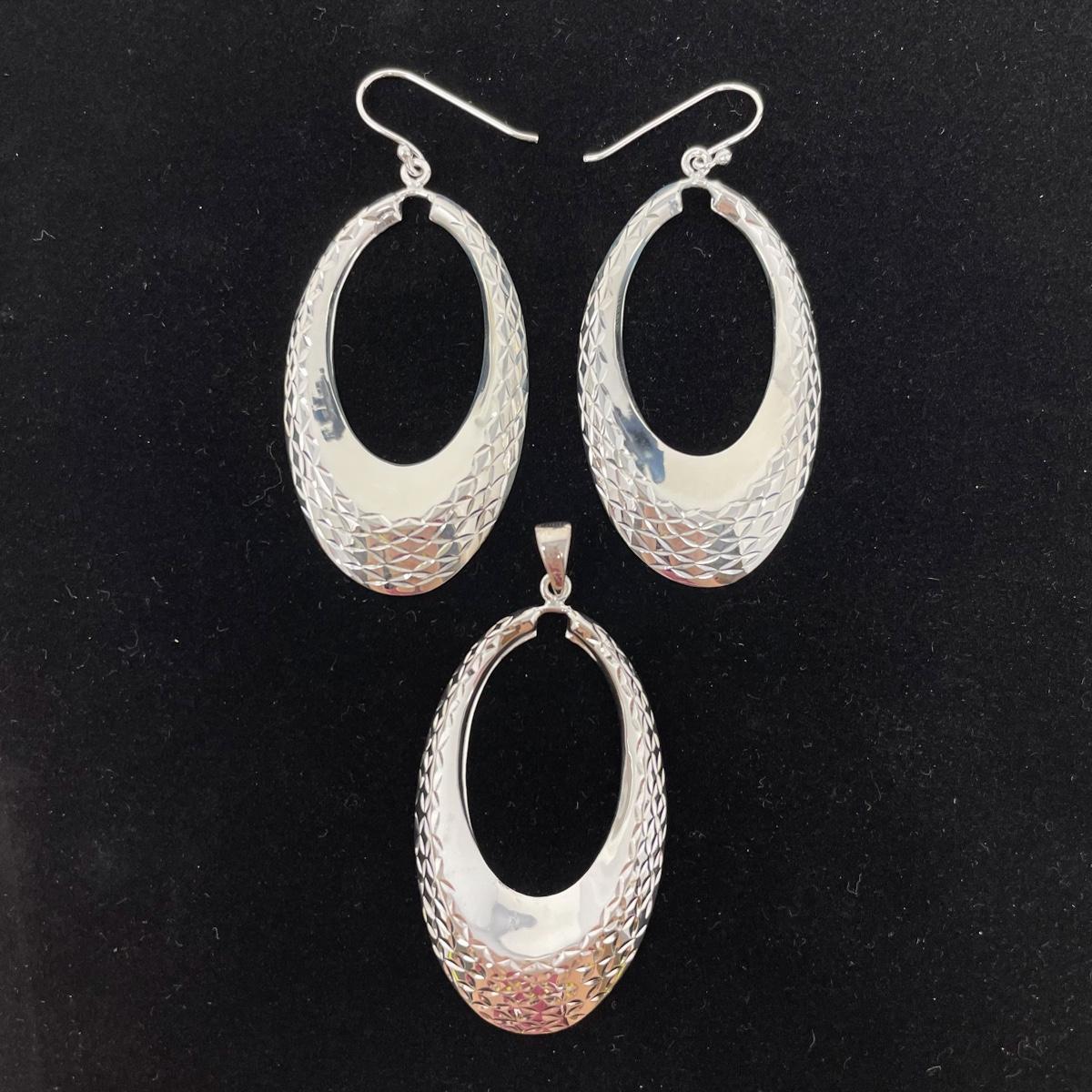 SILVER TONED OVAL EARRINGS & PENDANT SET