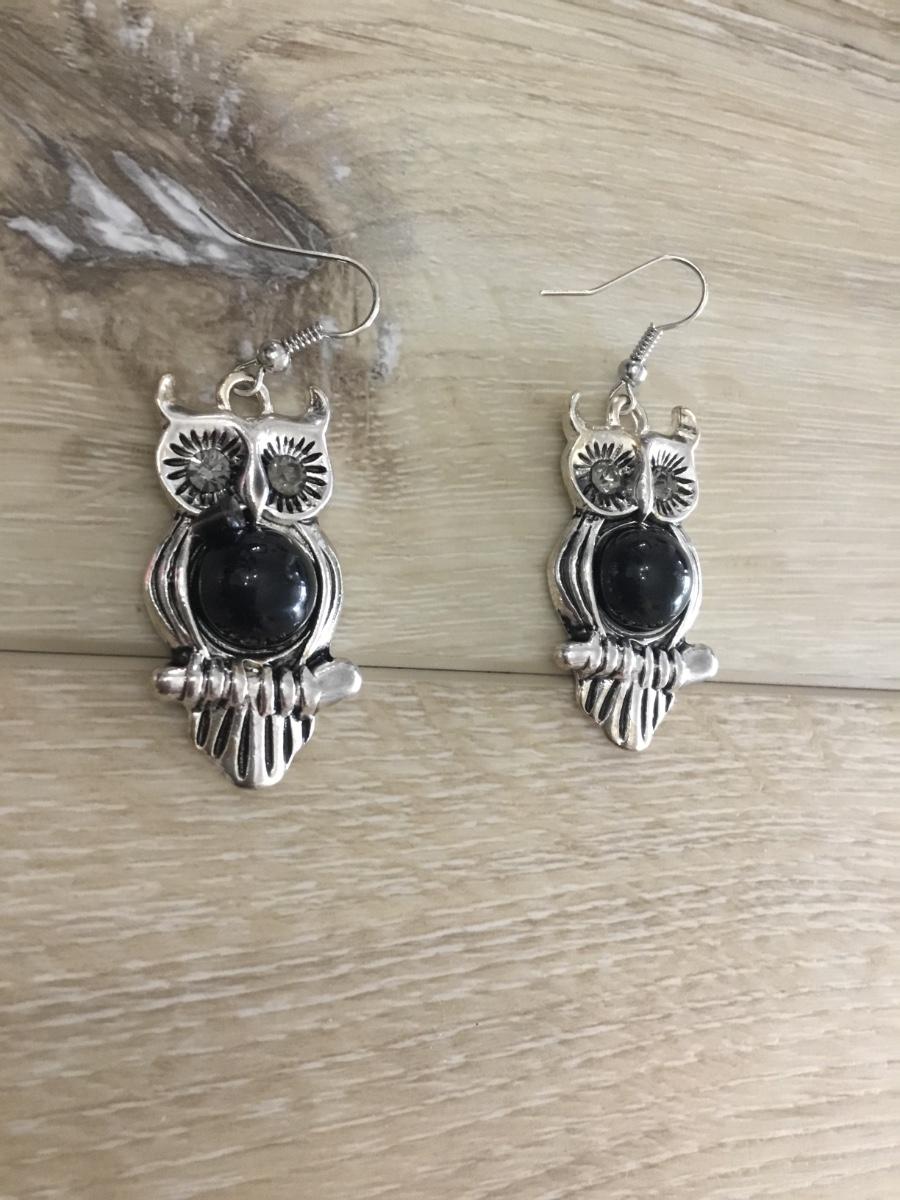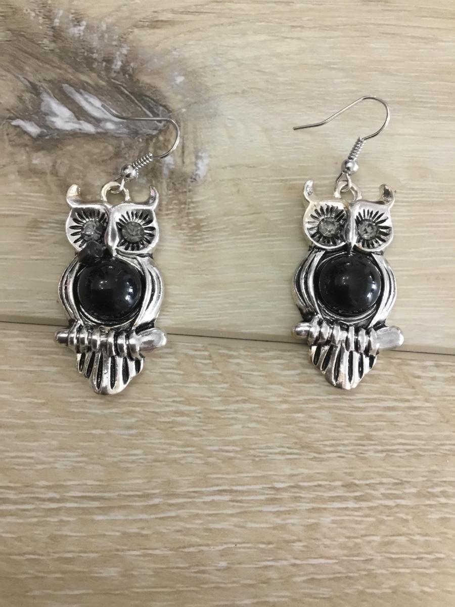Silver toned owl dangle earrings