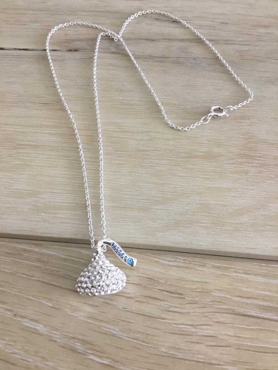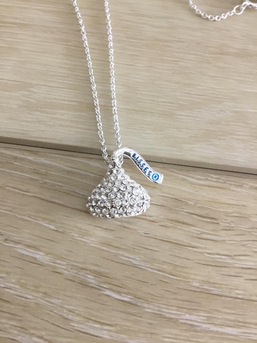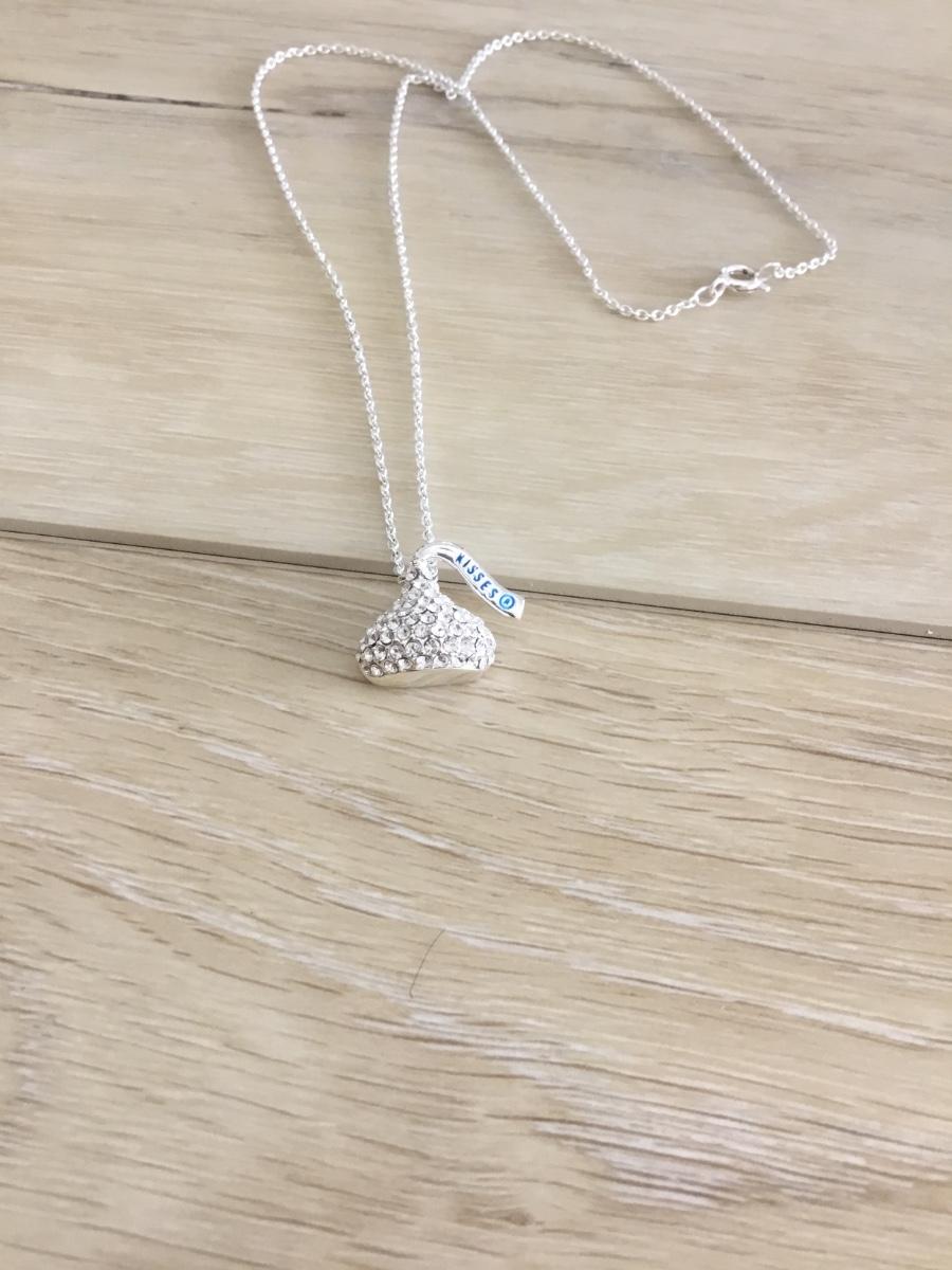 Silver, toned, rhinestone, Hershey’s kiss necklace