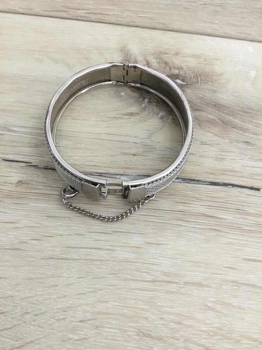 Silver toned, vintage mesh locket bracelet