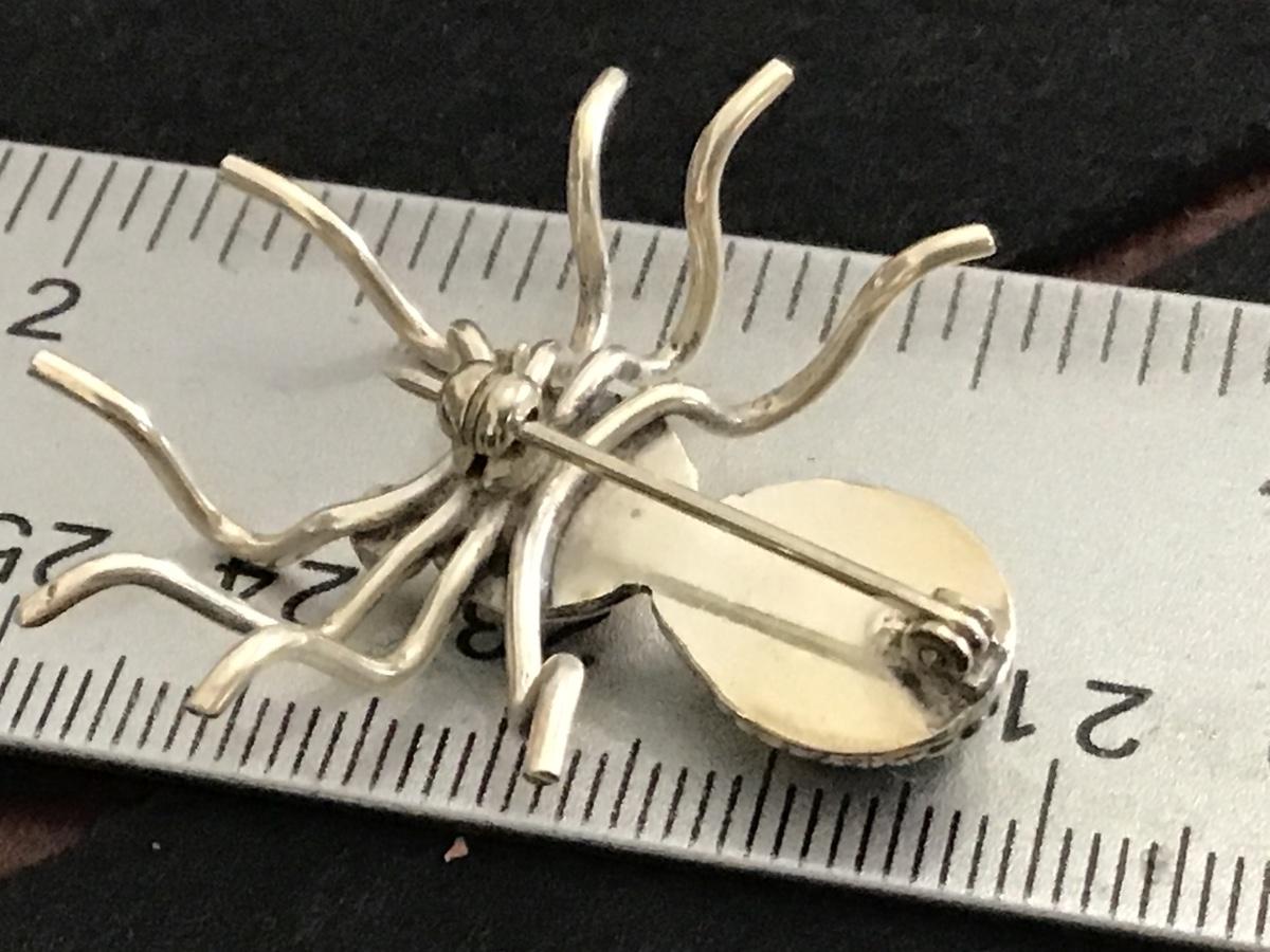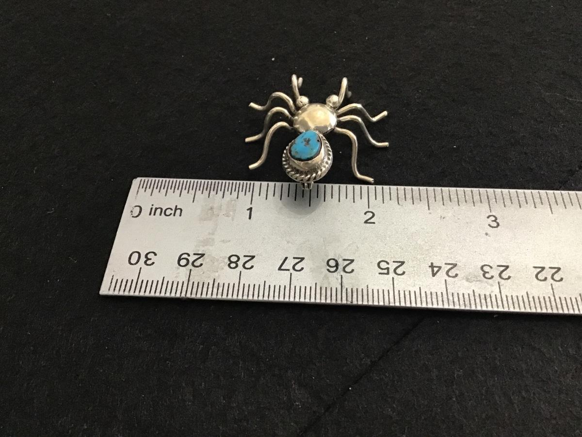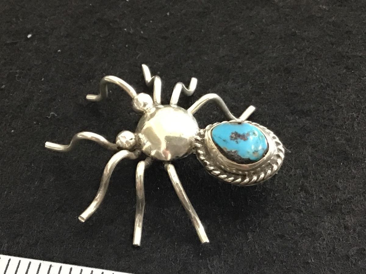 Silver Turquoise Spider Brooch