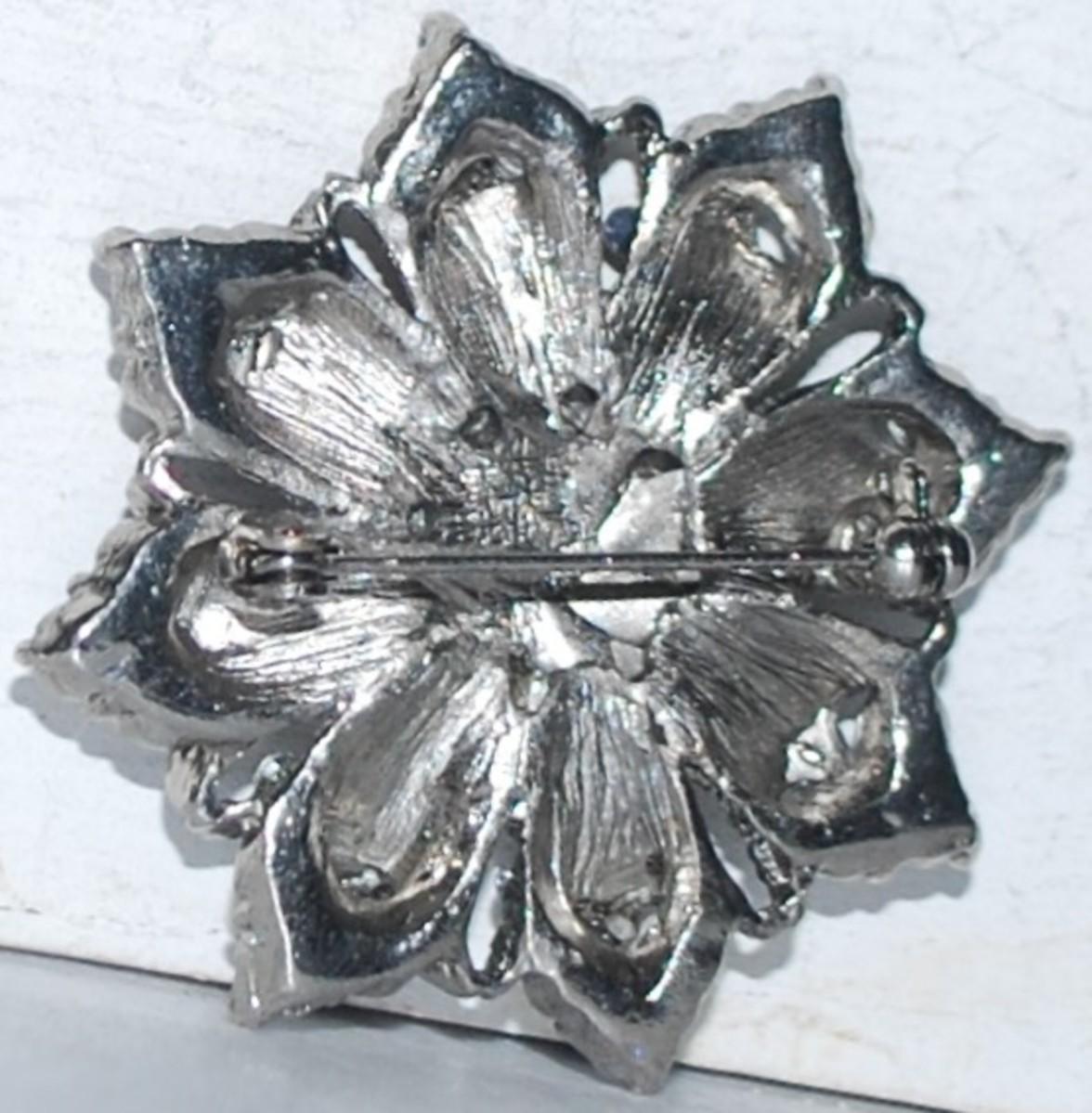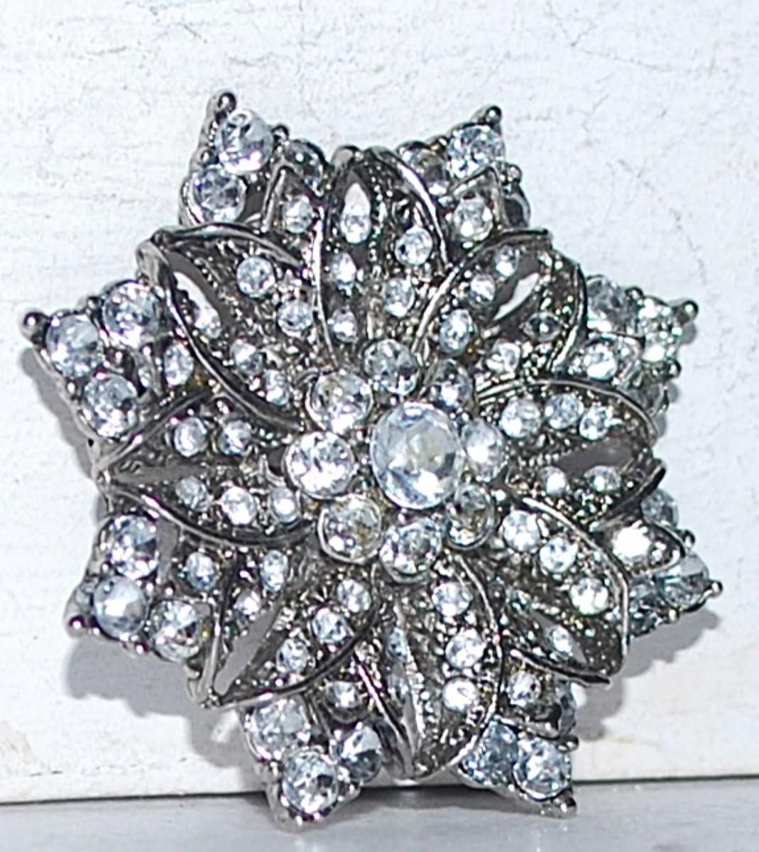 Silver-Colored Bejeweled 8 Petal STAR FLOWER BROOCH (1¾" Diam.) on a Silver Tone Setting