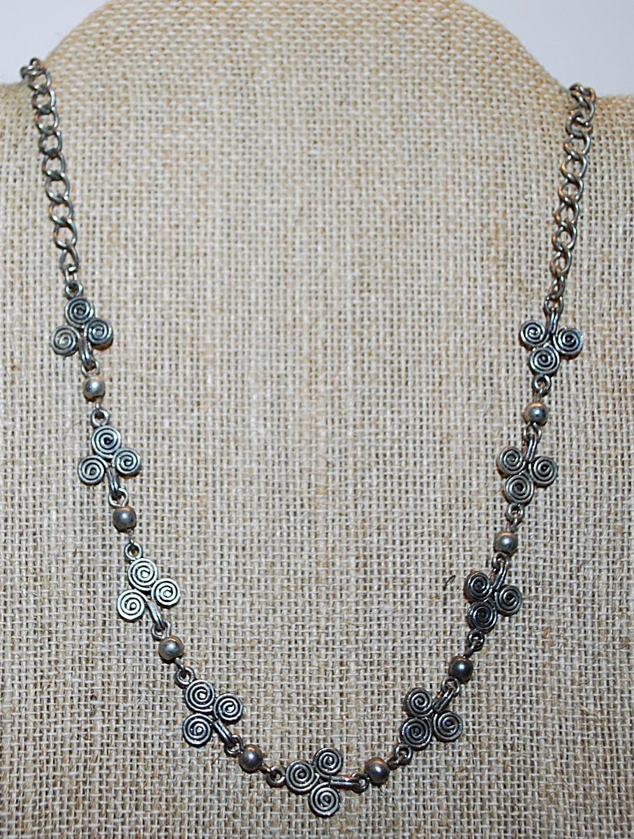Silver-Colored Triple Curled Circle FLOWER NECKLACE with Lobster Clasp 15" L