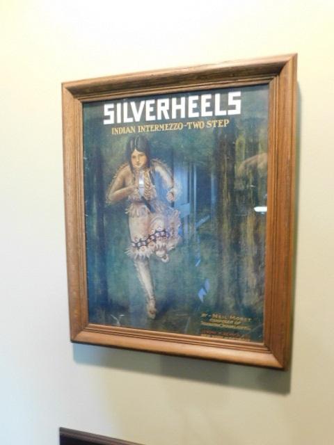 Silverheels Indian Intermezzo Two Step Sheet Music Booklet by Neil Moret in Frame 13"x16"nice collector piece.