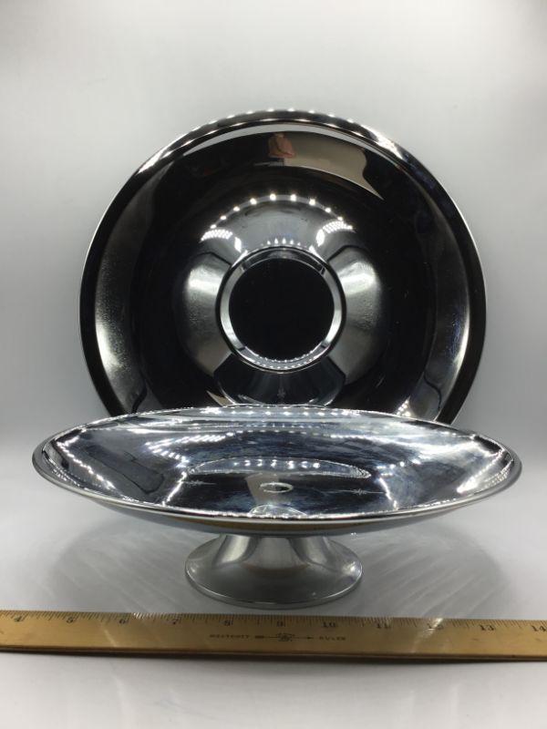 Two silverplate serving pieces. A footed plate and tray. Good Condition.