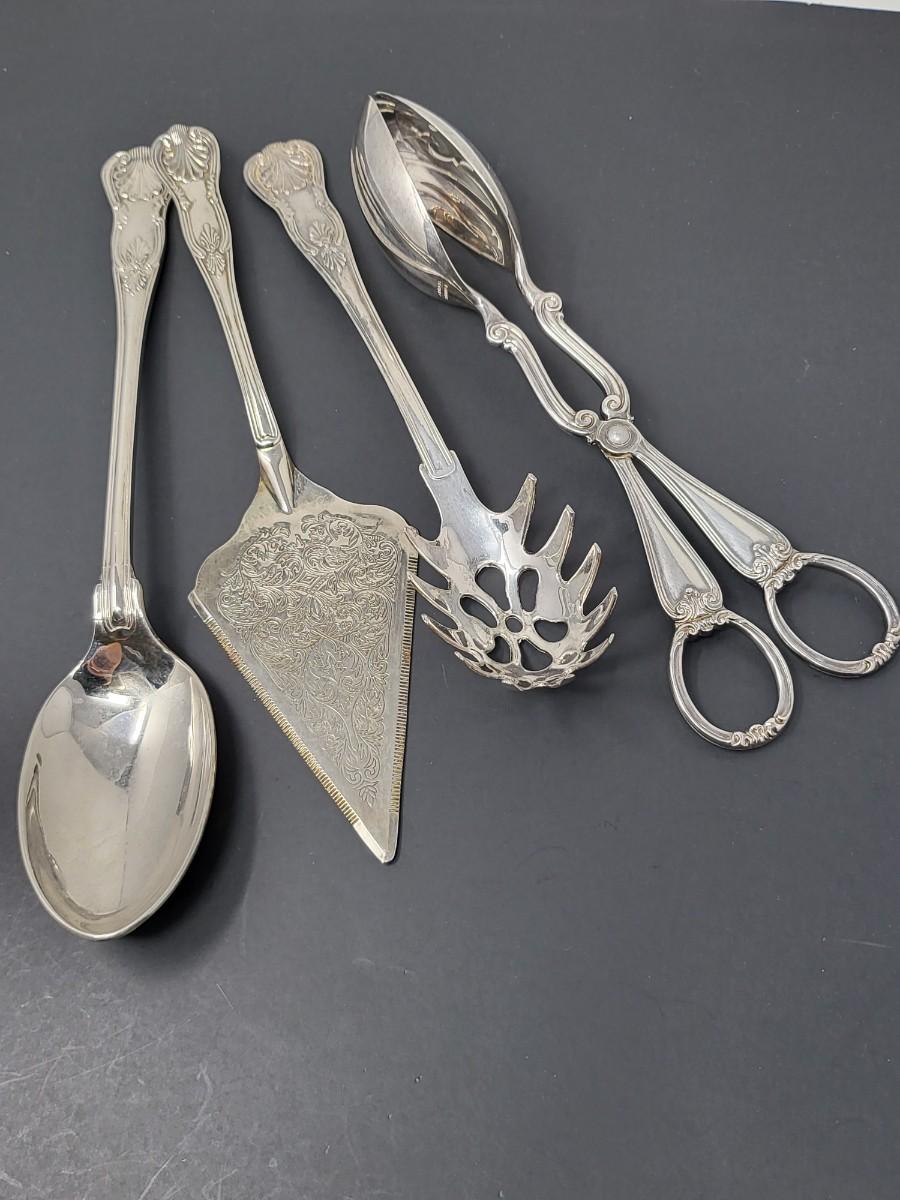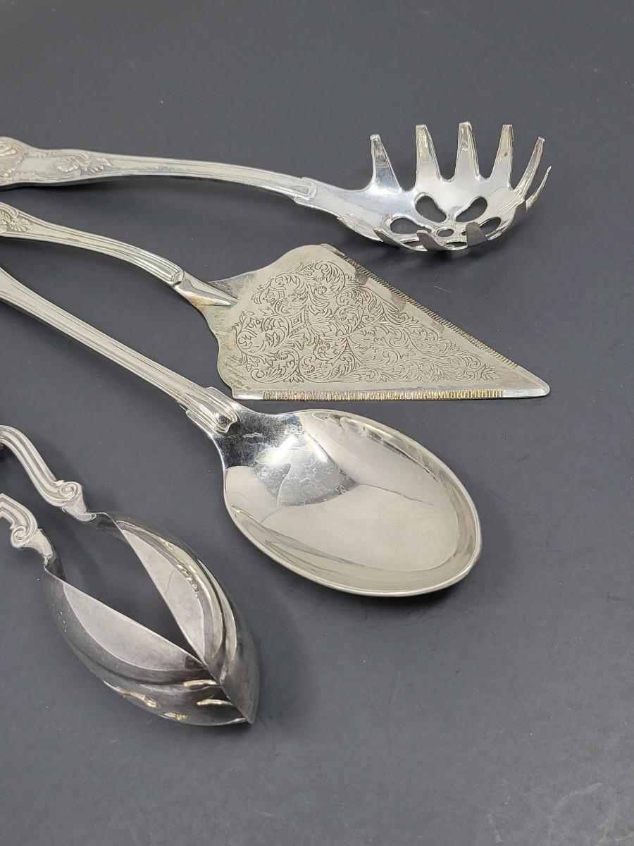 Unbranded, same pattern utensil set includes: 13" Serving spoon, 12" pie server, 11" pasta fork and 11" salad tongs.