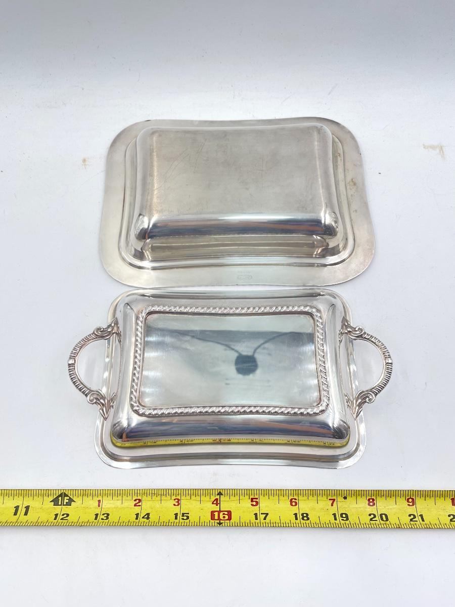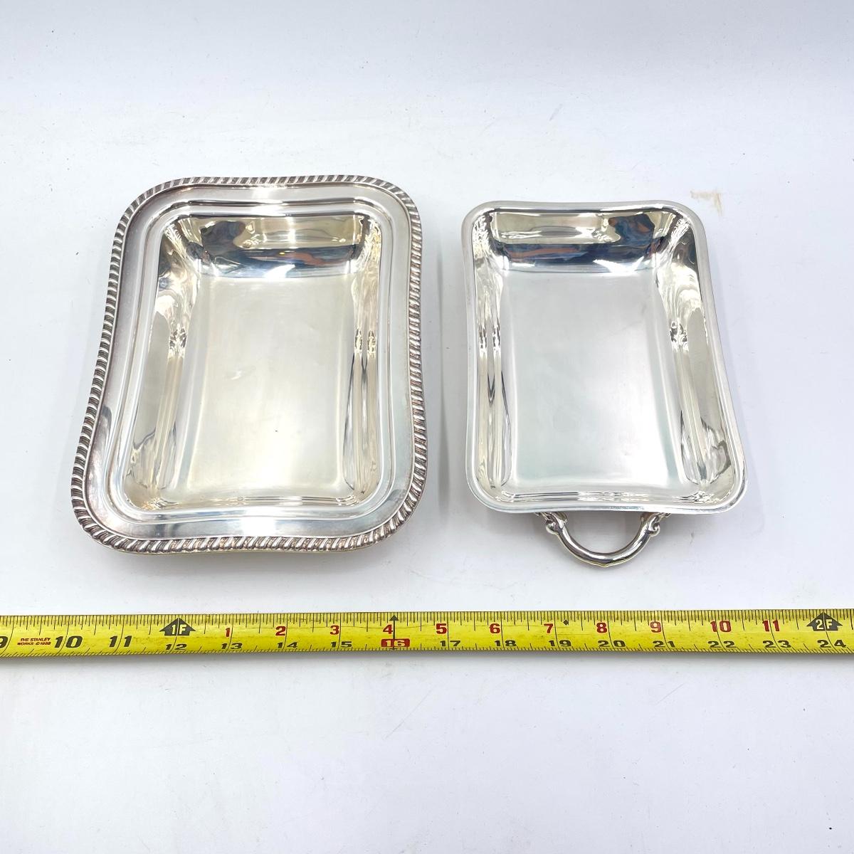 Tray with handle is approx 7.5” long, larger tray is approx 9” long. In good condition.
